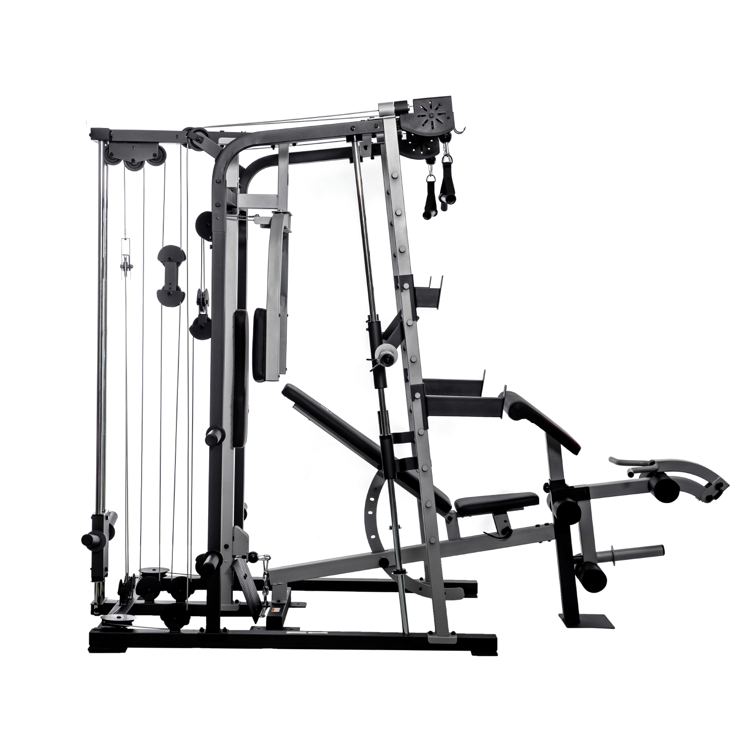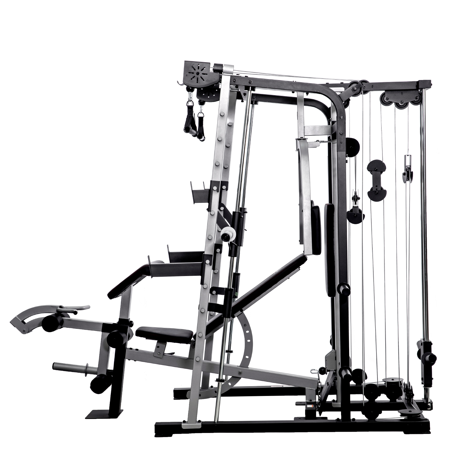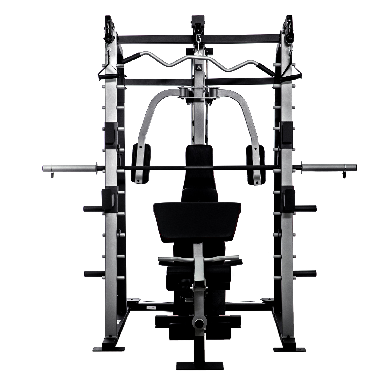 Тренажер предназначен для выполнения различных силовых упражнений: Машина Смита, тяга сверху / снизу, баттерфляй, парта для бицепса, сгибание / разгибание, жим лежа на скамье дополнительной штанги (опция).