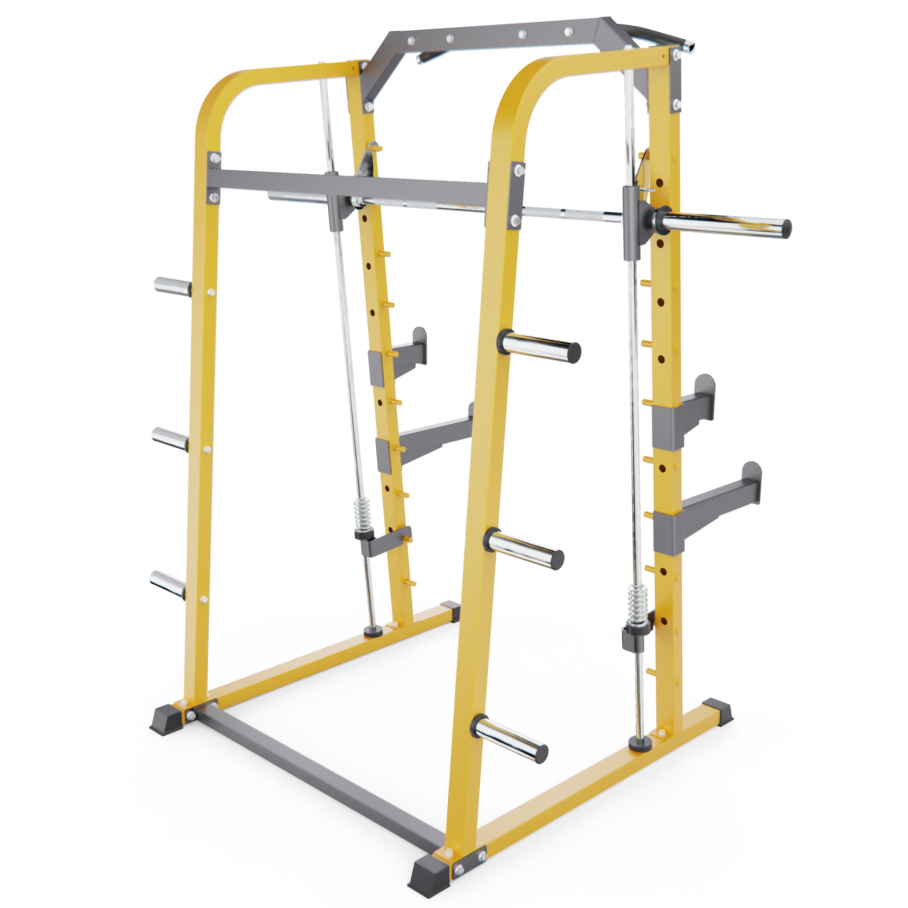 Максимальная нагрузка на верхний турник до 150 кг, на гриф — до 200 кг, на ограничители амплитуды движения — до 250 кг.