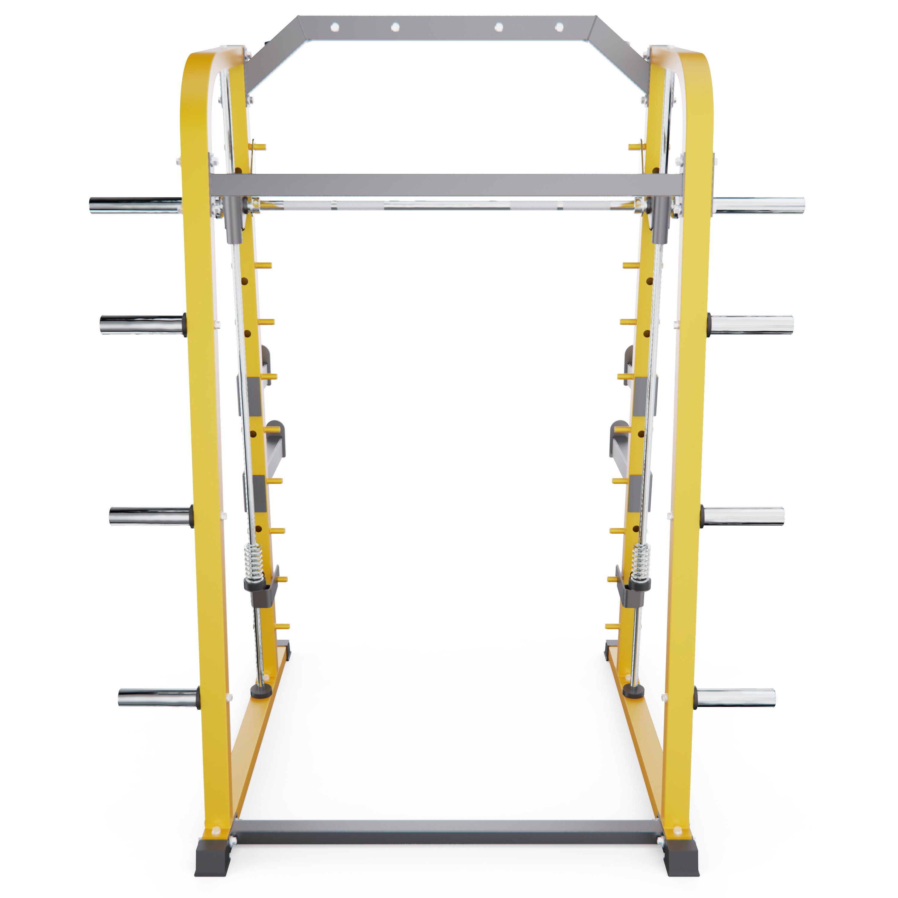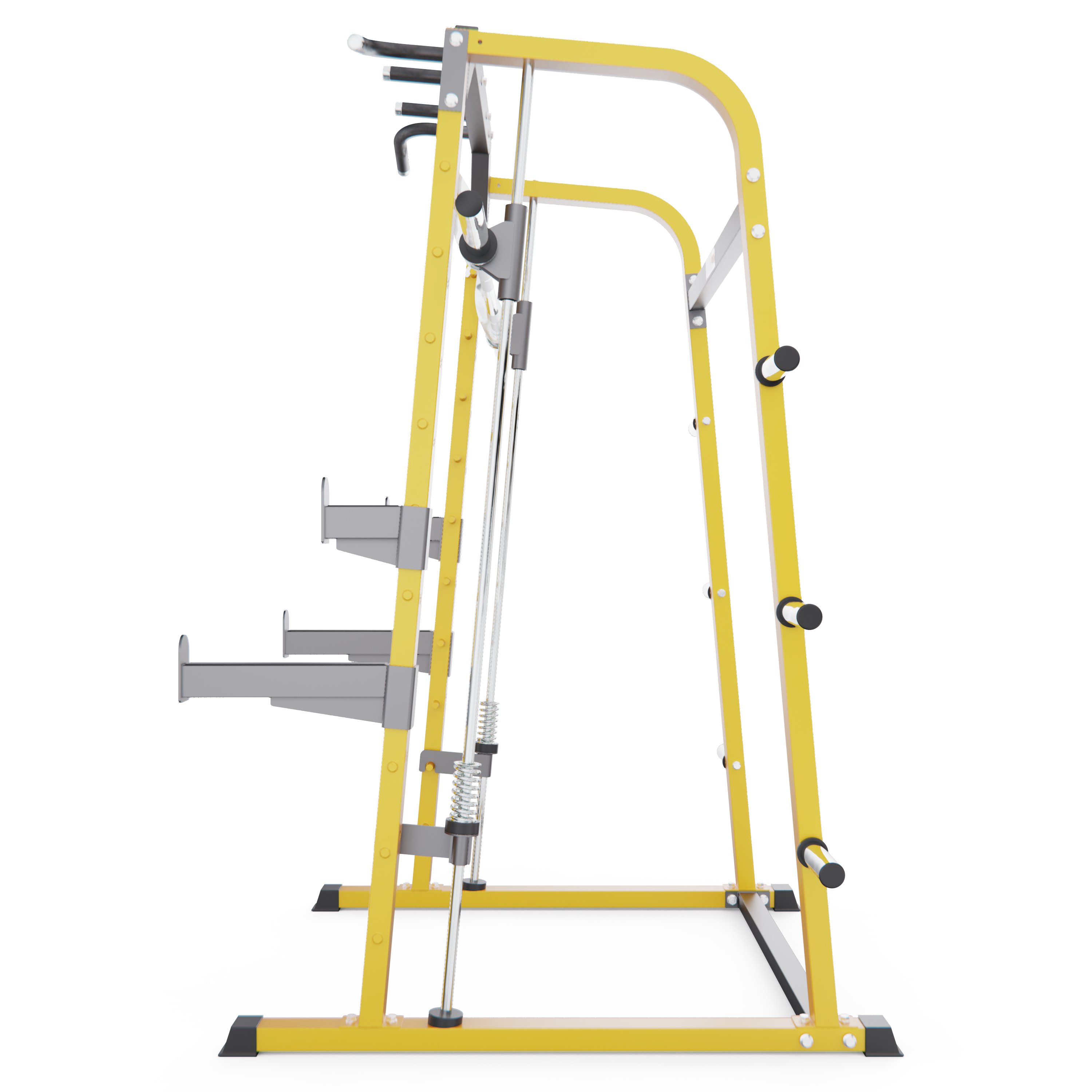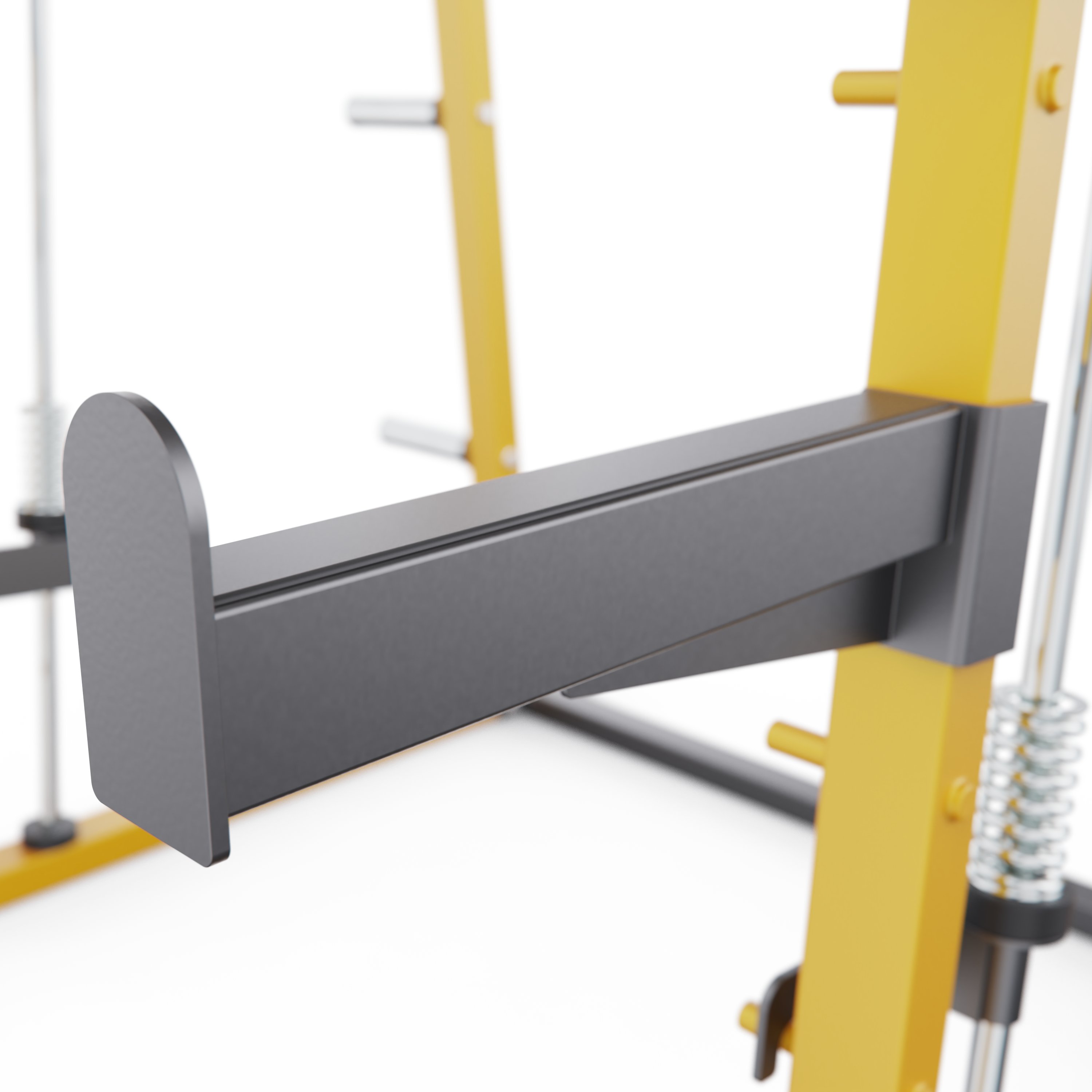 Дополнительные J-образные крюки помогут удобно разместить штангу на нужной высоте, позволяя атлетам безопасно выполнять жимы, приседания и тяги без страховщика.