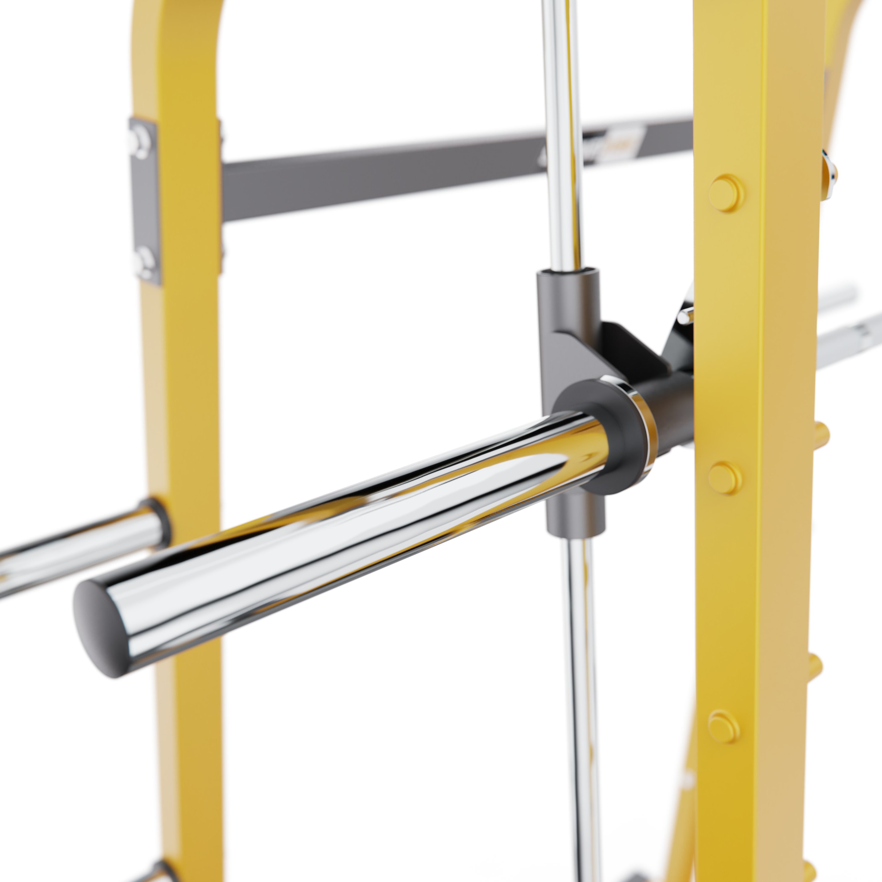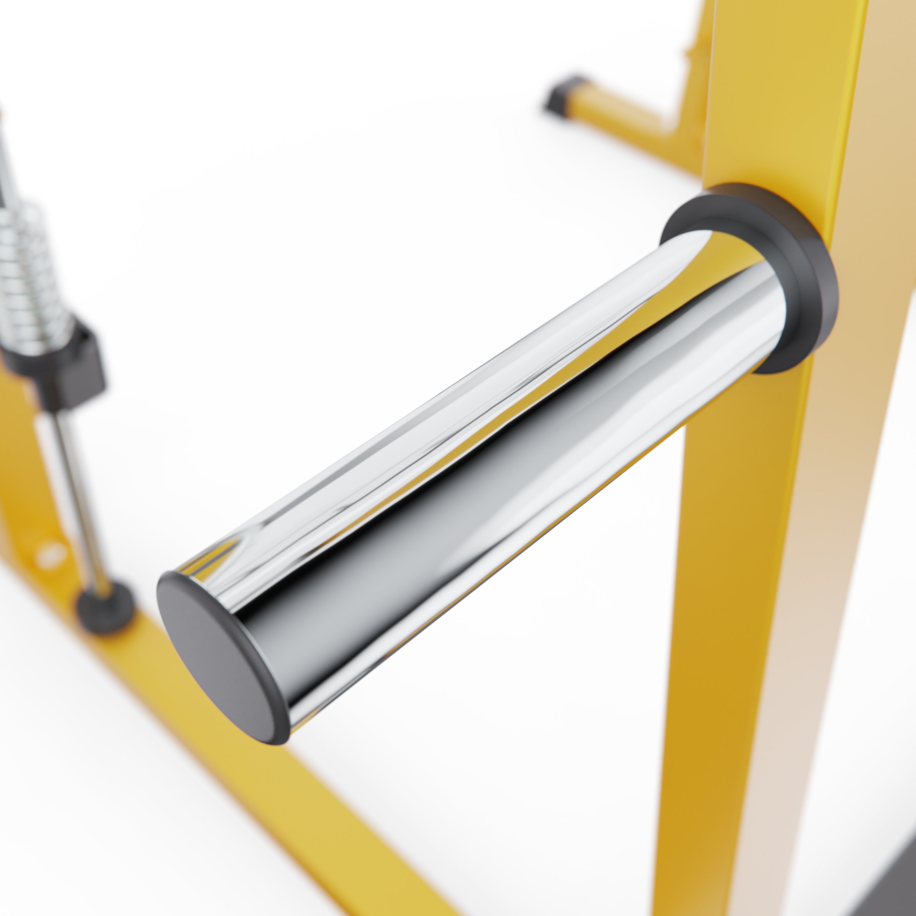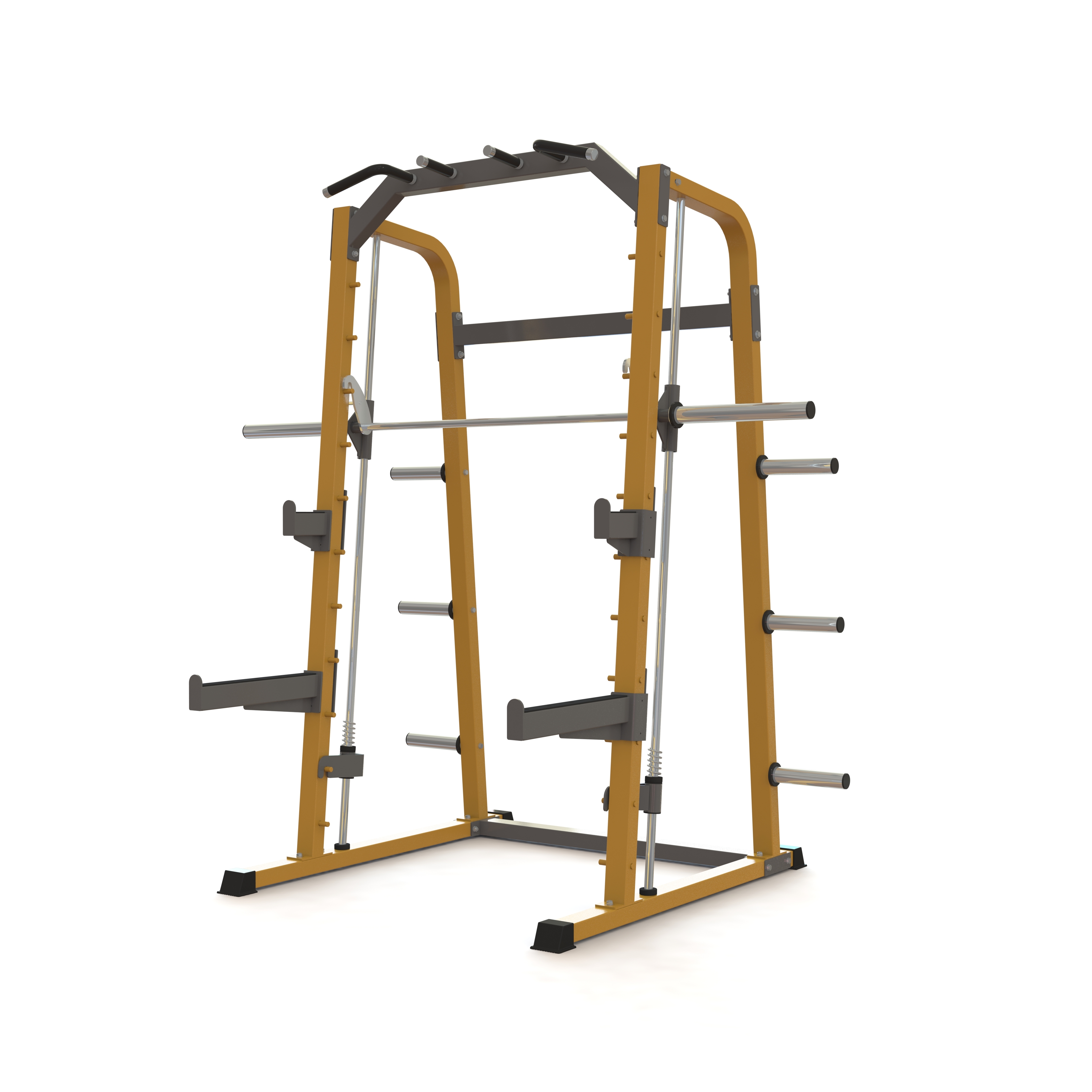Дополнительные J-образные крюки помогут удобно разместить штангу на нужной высоте, позволяя атлетам безопасно выполнять жимы, приседания и тяги без страховщика.