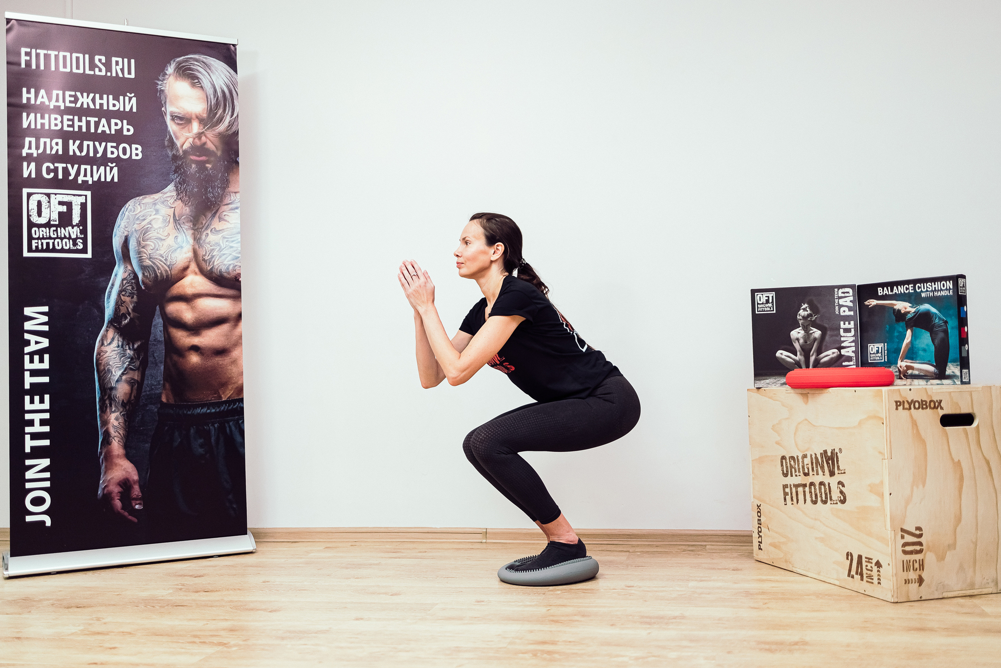Балансировочная подушка Original FitTools имеет множество вариантов использования.