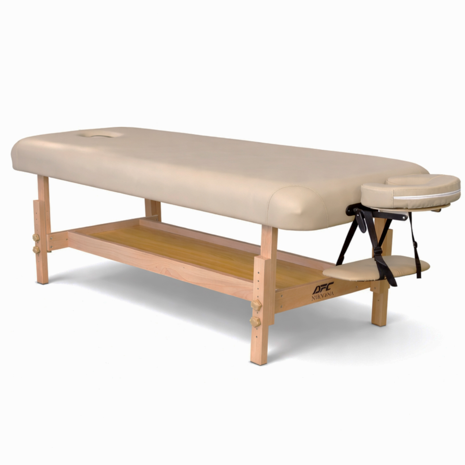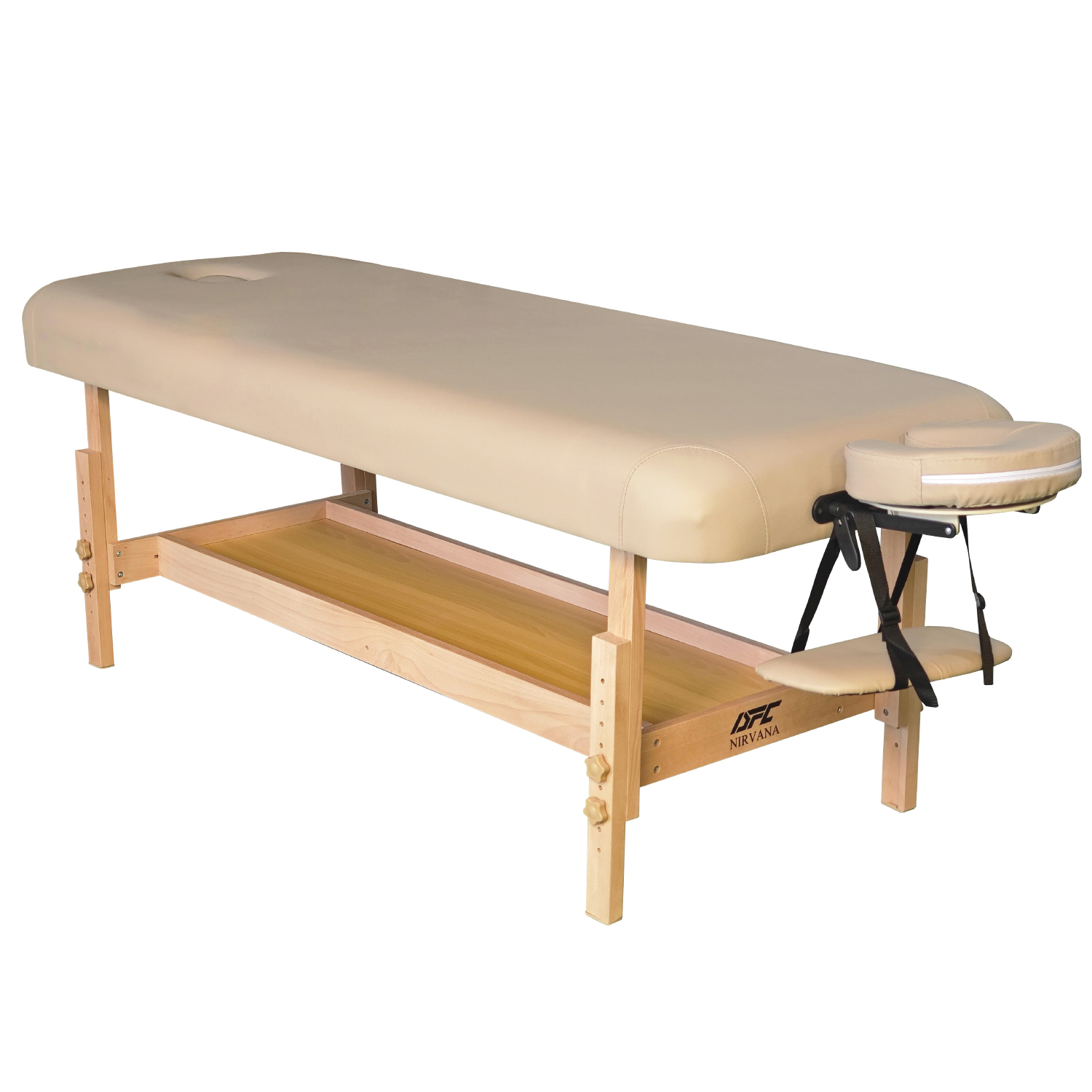 Стационарный массажный стол отличается высокой устойчивостью и надежностью. Прочные и толстые деревянные ножки из бука обеспечивают отличную фиксацию на полу и уверенную работу без раскачивания. Такая конструкция особенно ценится при регулярном использовании в домашних условиях.