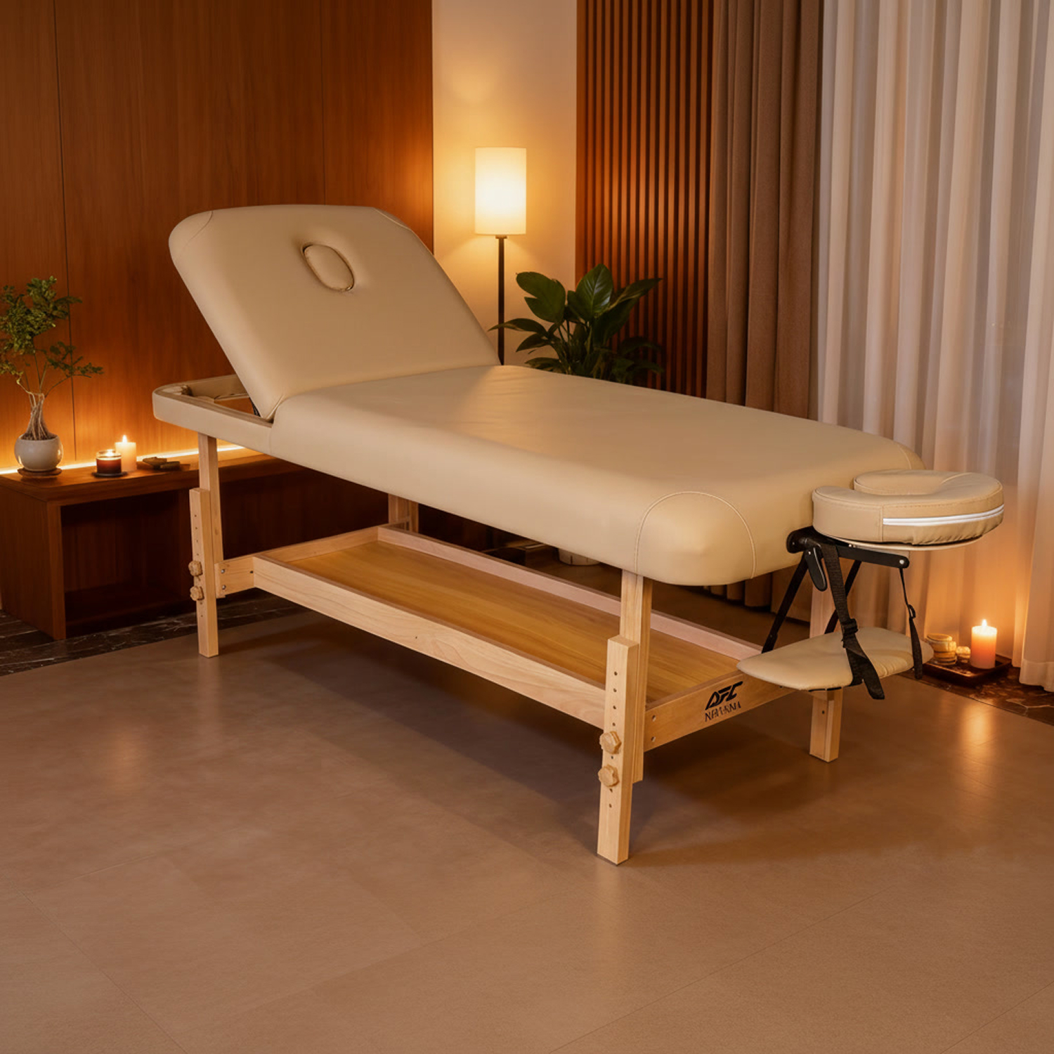 Массажный стол выполнен в цвете Camel — это тёплый и естественный оттенок, который придаёт изделию стильный и гармонично вписывается в интерьер дома или массажного кабинета.