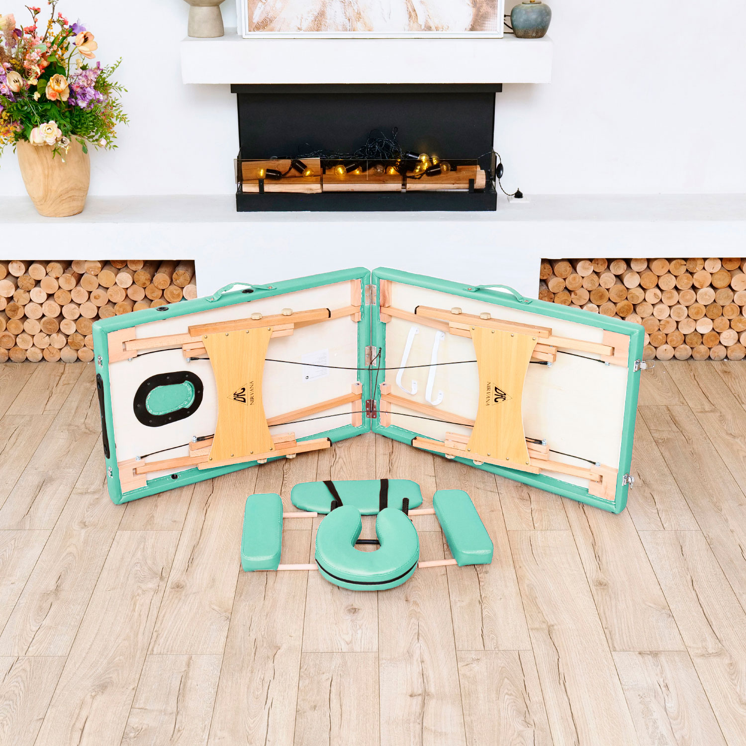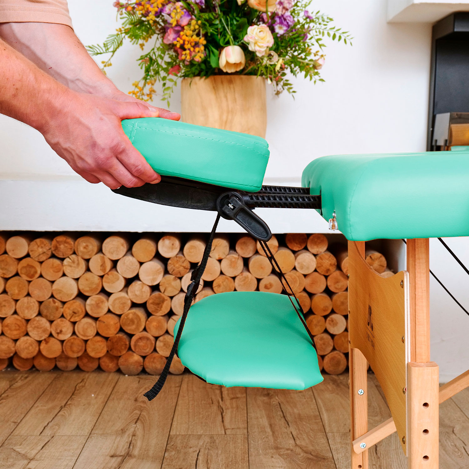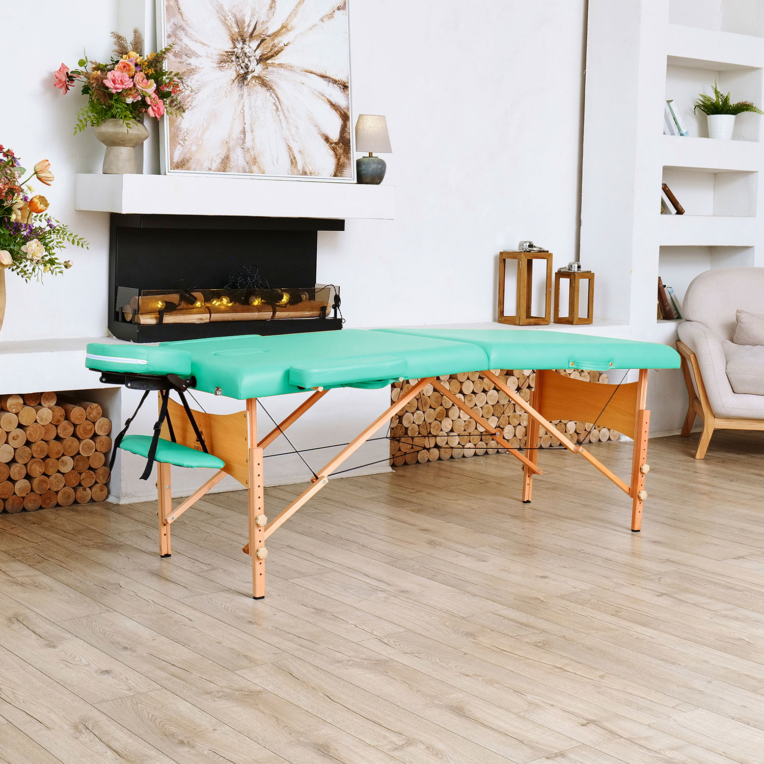 Складной 2-х секционный переносной массажный стол DFC NIRVANA Optima. Изготовлен из высококачественных компонентов. Идеально подходит для домашней эксплуатации.