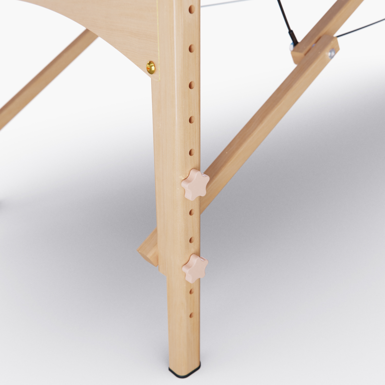 Благодаря применению бука в конструкции рамы вес стола существенно облегчен и составляет 13 кг. Имеет складную конструкцию. Удобен для хранения и транспортировки. В комплект входит сумка-чехол для переноски.