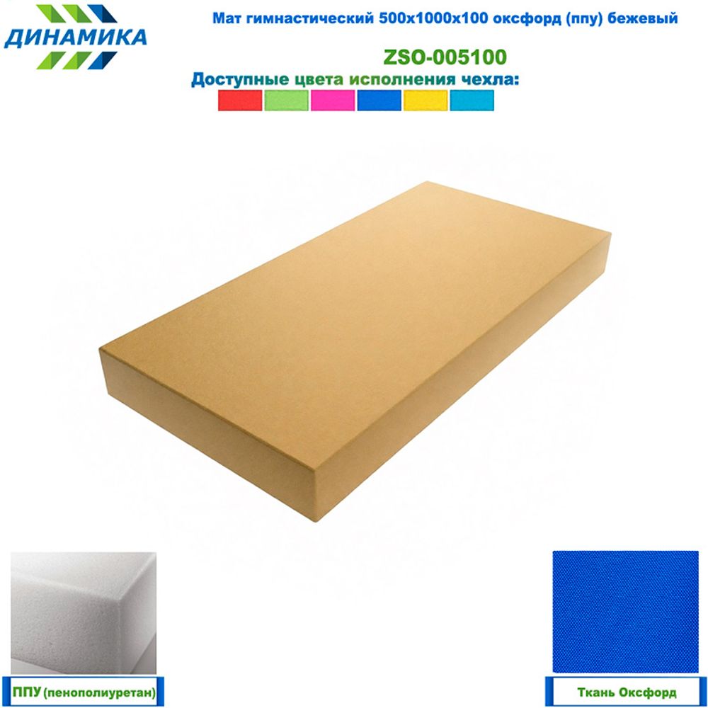 Гимнастический мат 500 × 1000 × 100 мм, бежевый (ткань «Оксфорд», наполнитель — ППУ)