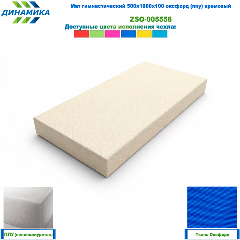 Гимнастический мат 500 × 1000 × 100 мм, кремовый (ткань «Оксфорд», наполнитель — ППУ)