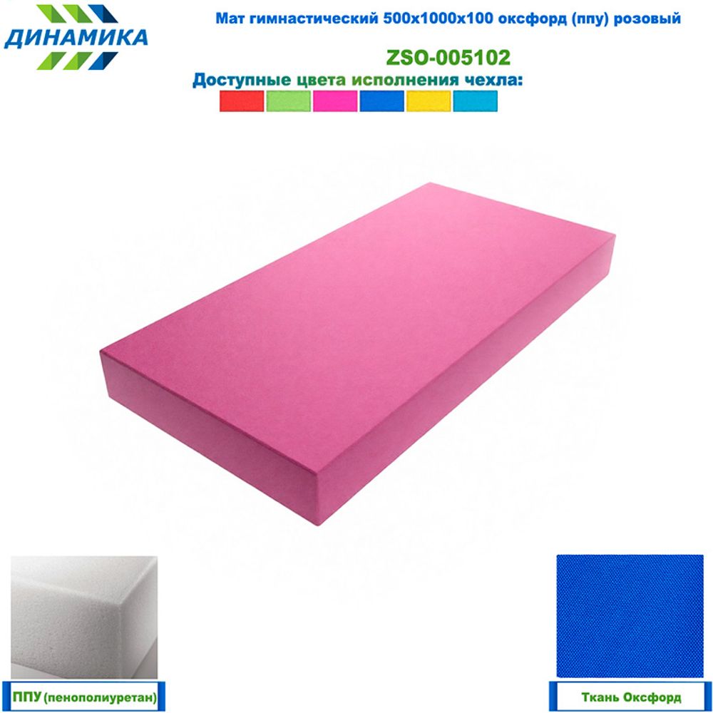 Гимнастический мат 500 × 1000 × 100 мм, розовый (ткань «Оксфорд», наполнитель — ППУ)