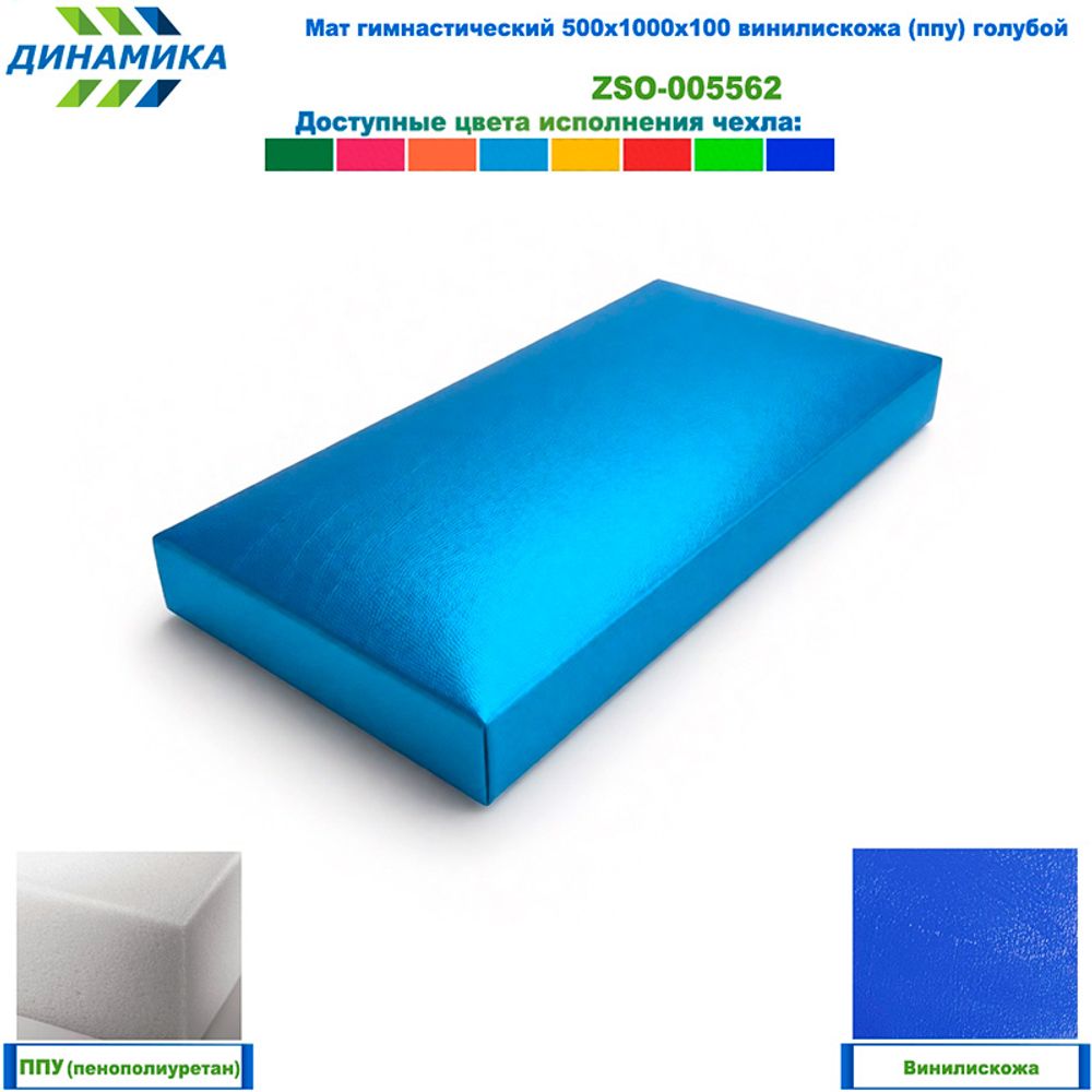 Гимнастический мат 500 × 1000 × 100 мм, голубой (винилискожа, наполнитель — ППУ)