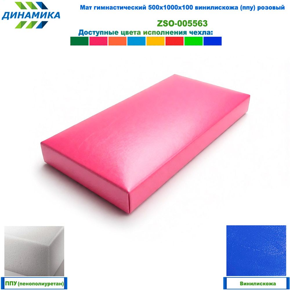 Гимнастический мат 500 × 1000 × 100 мм, розовый (винилискожа, наполнитель — ППУ)
