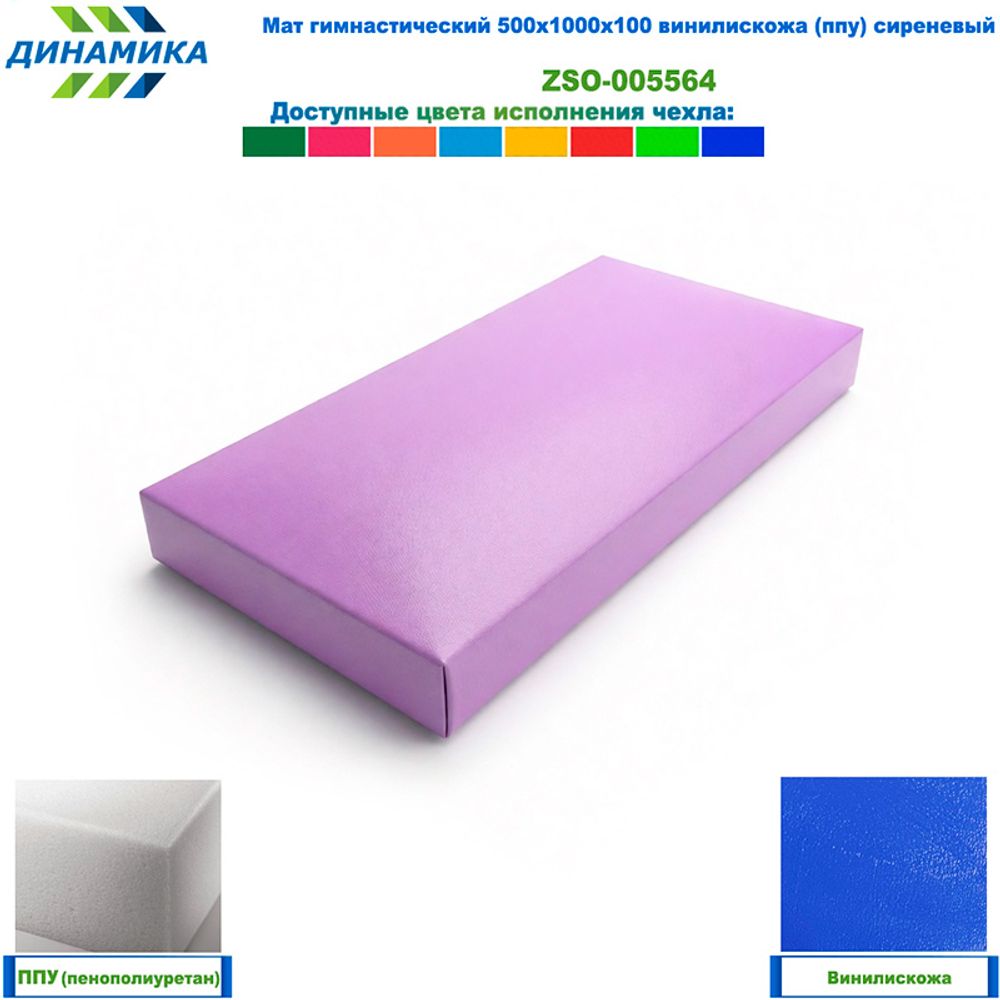 Гимнастический мат 500 × 1000 × 100 мм, сиреневый (винилискожа, наполнитель — ППУ)