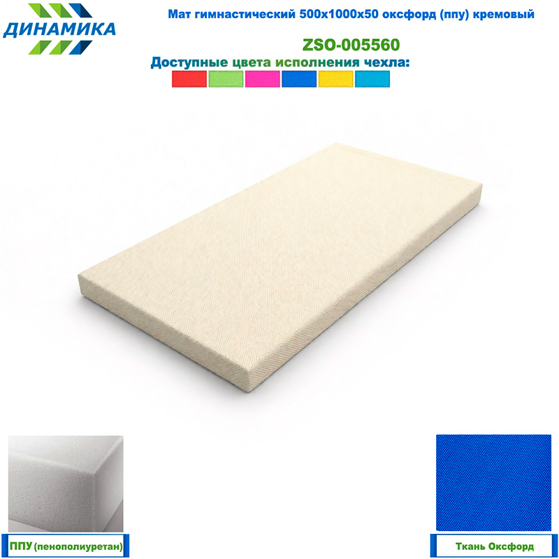 Гимнастический мат 500 × 1000 × 50 мм, кремовый (ткань «Оксфорд», наполнитель — ППУ)