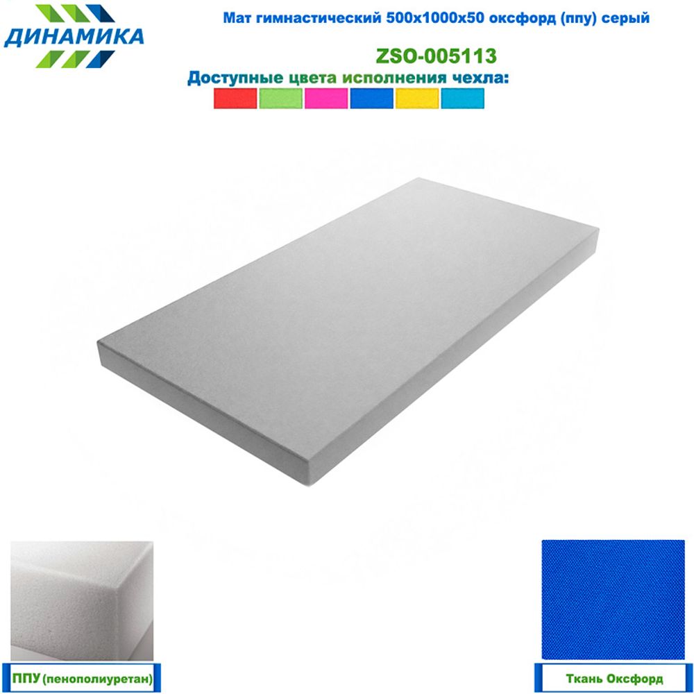 Гимнастический мат 500 × 1000 × 50 мм, серый (ткань «Оксфорд», наполнитель — ППУ)