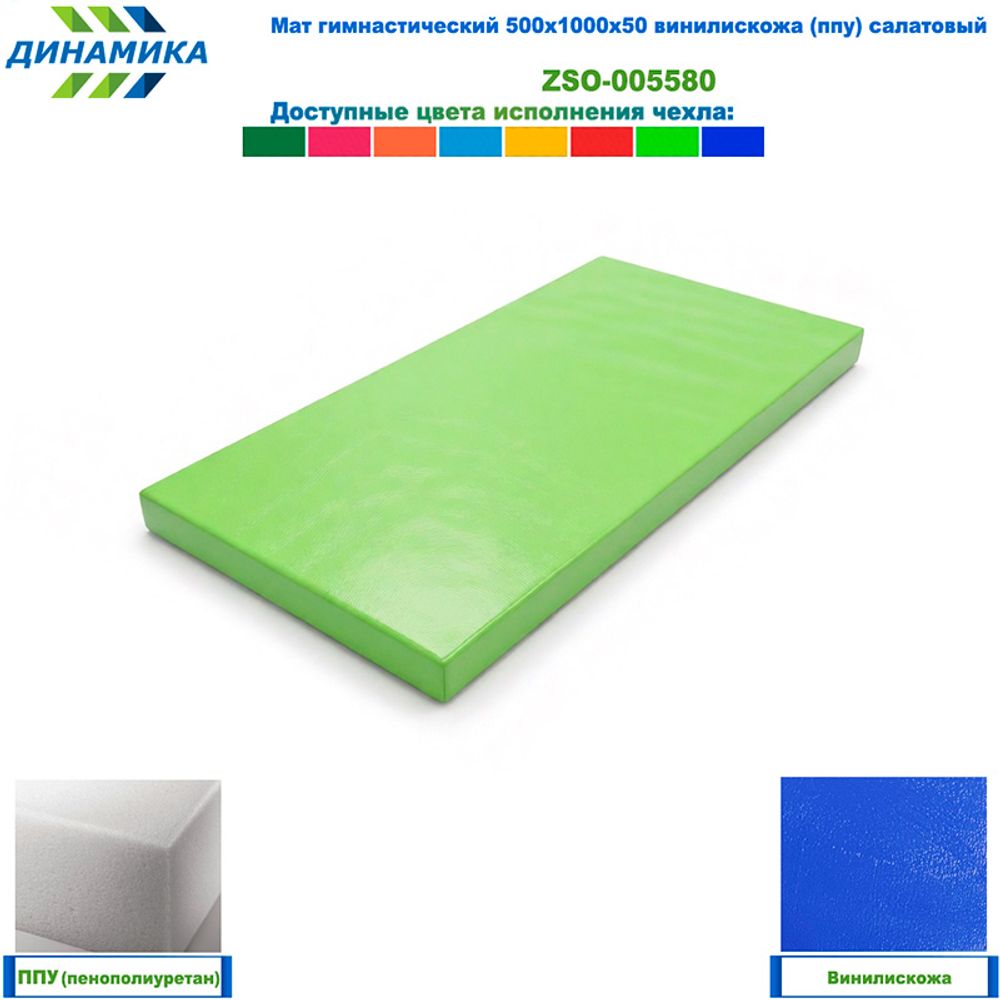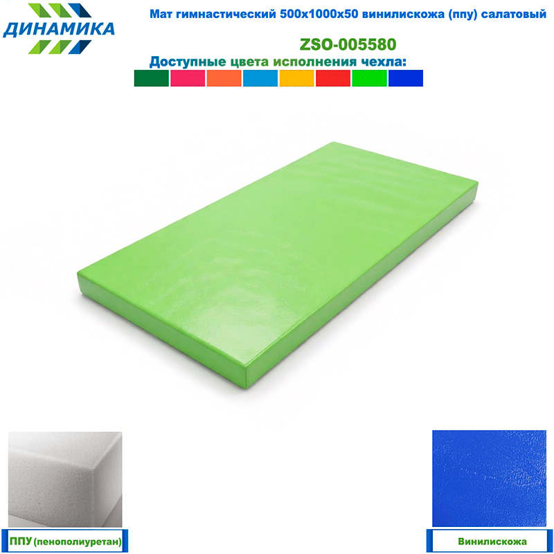 Гимнастический мат 500 × 1000 × 50 мм, салатовый (винилискожа, наполнитель — ППУ)