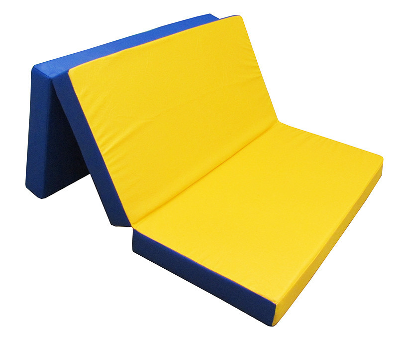 Мат гимнастический предотвращает травмы при занятии акробатикой, фитнесом и др. Также мат размещают под или около шведской стенки. Мат двухсторонний, поэтому его можно переворачивать любой стороной. Расцветка - сине-желтая. Сделан из искусственной кожи.