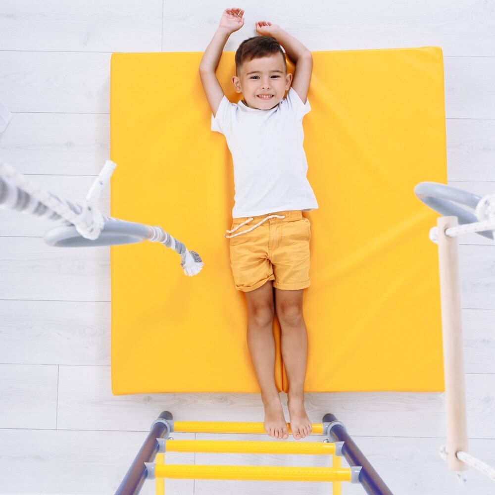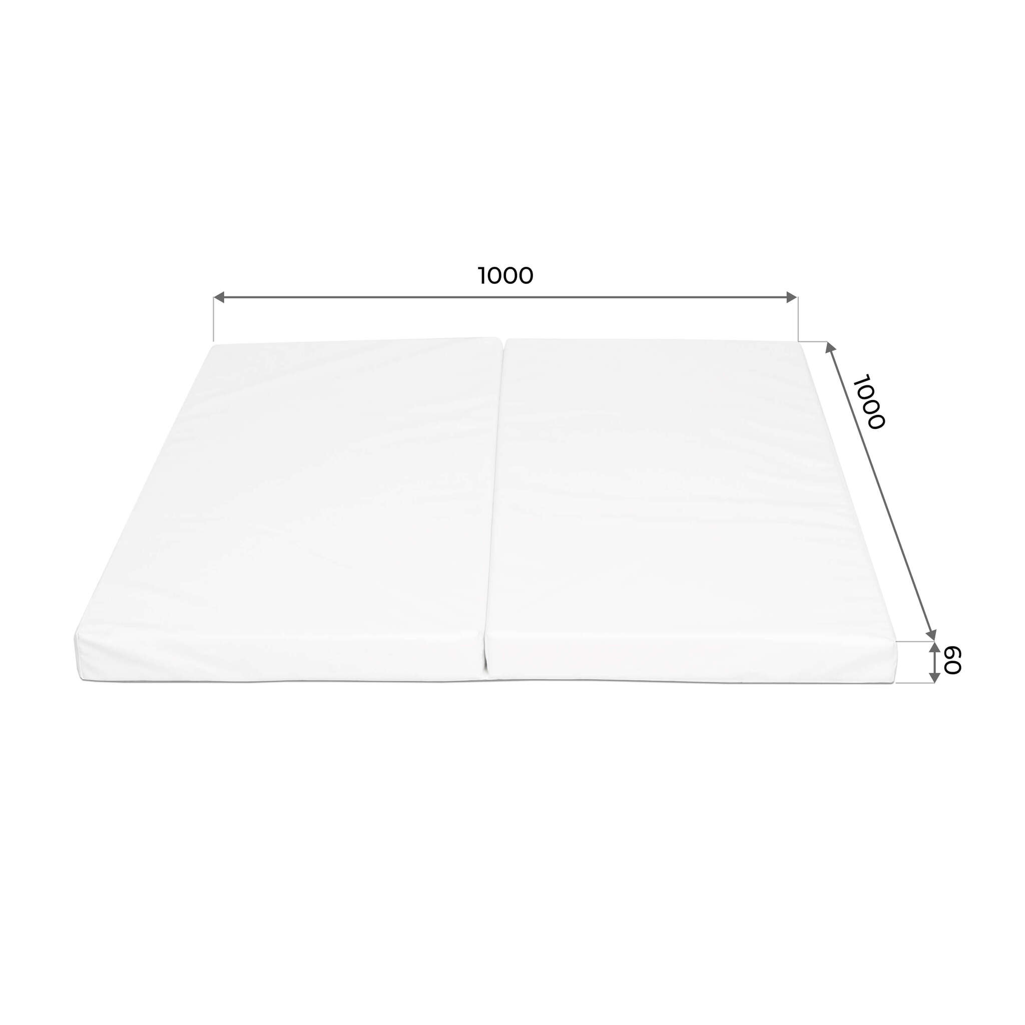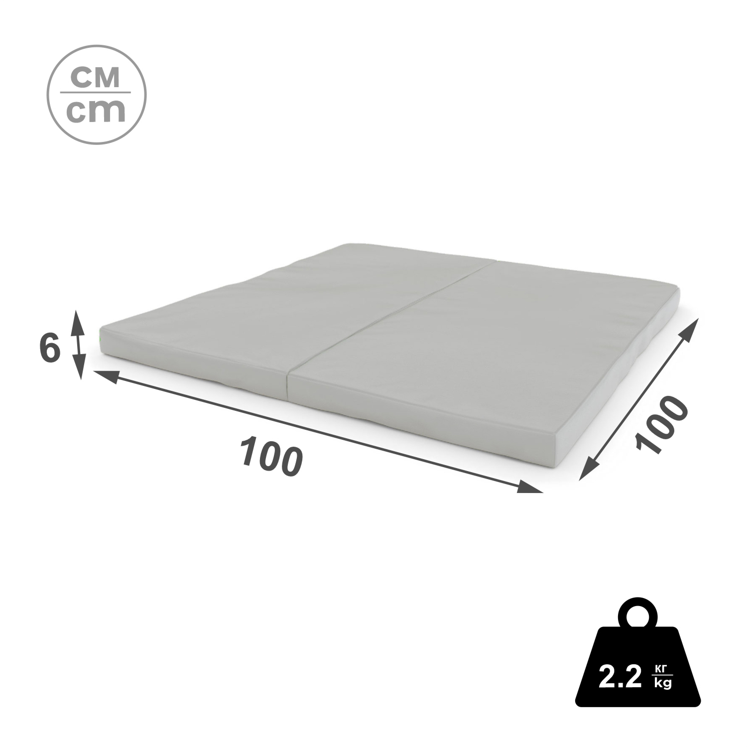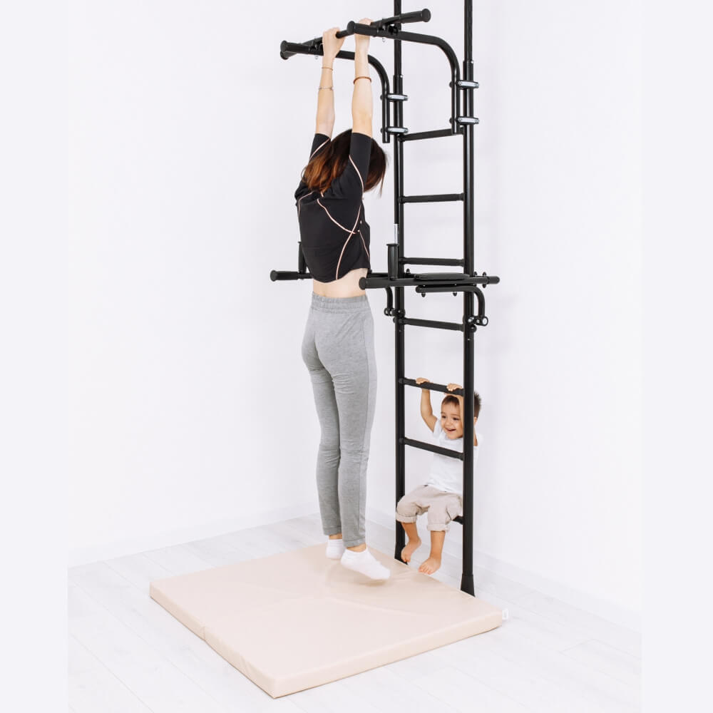 Материал устойчив к царапинам, грязи и влаге, что делает его долговечным в использовании и легким в уходе — достаточно протереть влажной салфеткой. Складной мат не занимает много места, его удобно хранить прямо за шведской стенкой.