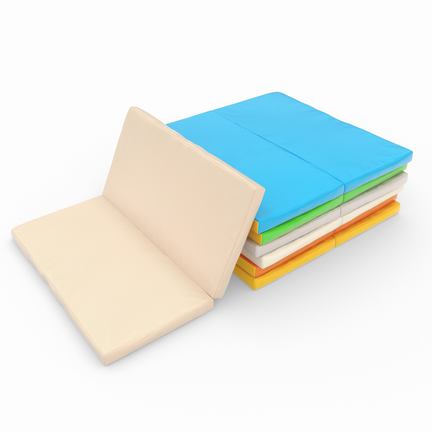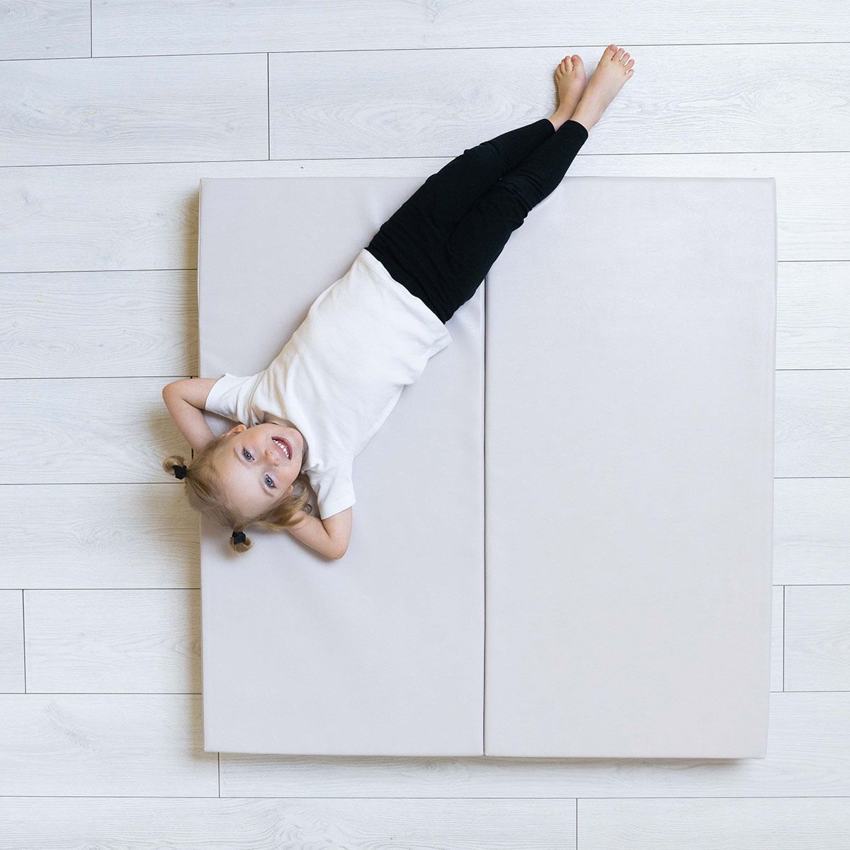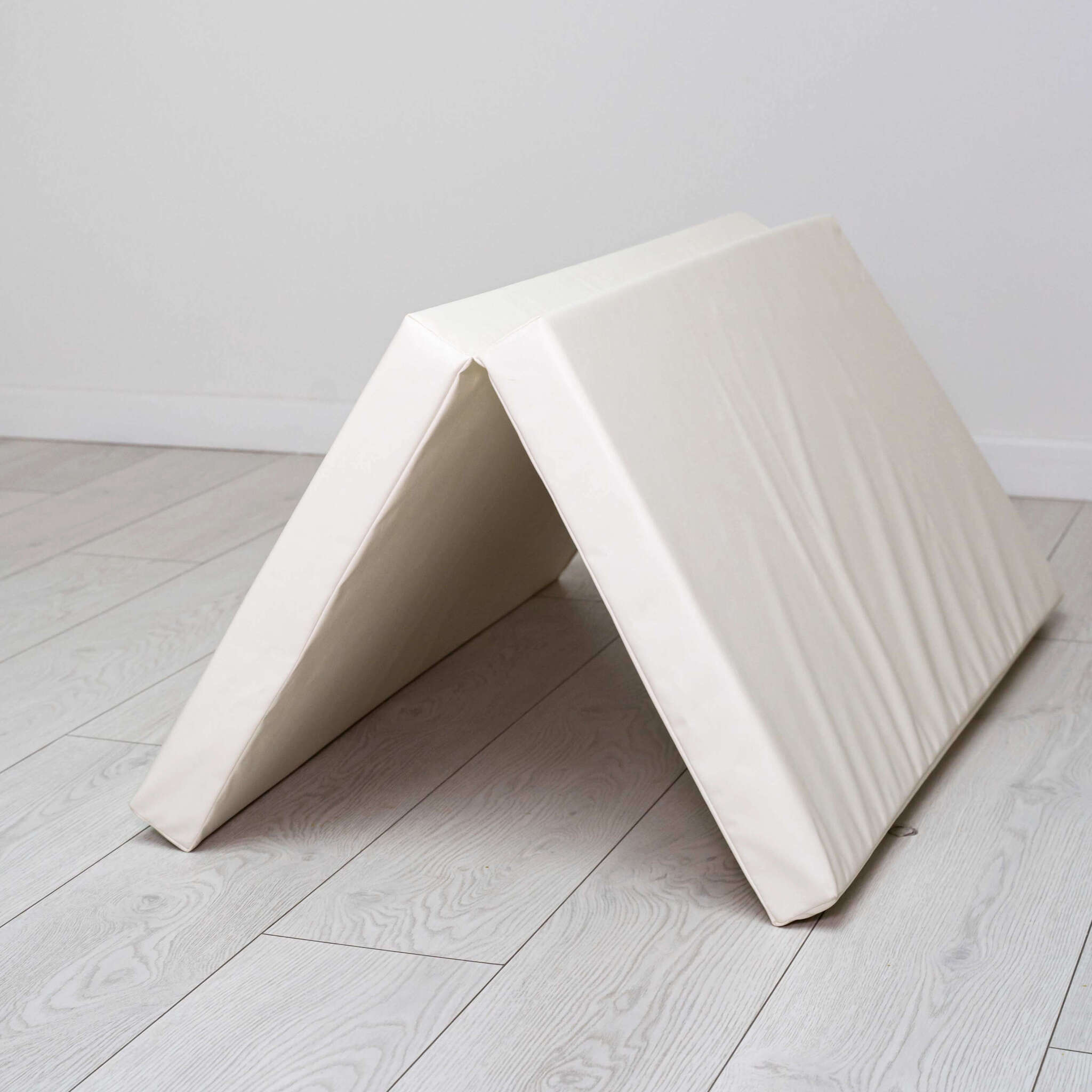 Детский спортивный складной гимнастический мат толщиной 6 см и с плотностью 18 кг/м³ изготовлен из поролона и винилкожи. Он смягчает падения и позволяет ребенку безопасно заниматься спортом.