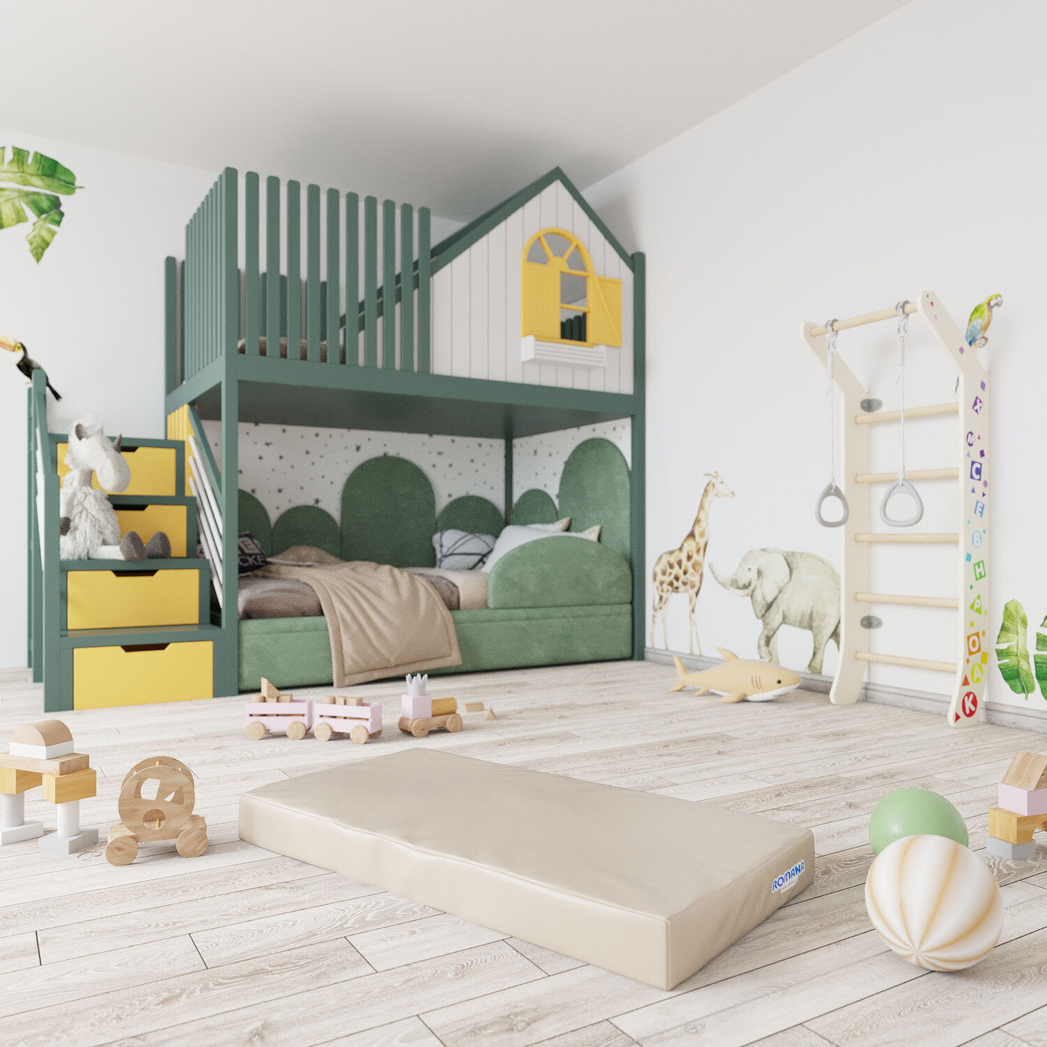 Изделие выполнено из упругого поролона и обладает высокими амортизирующими свойствами. Толщина мата 100мм обеспечивает максимальную защиту от травм во время физической активности и подойдет как для детей, так и для взрослых.