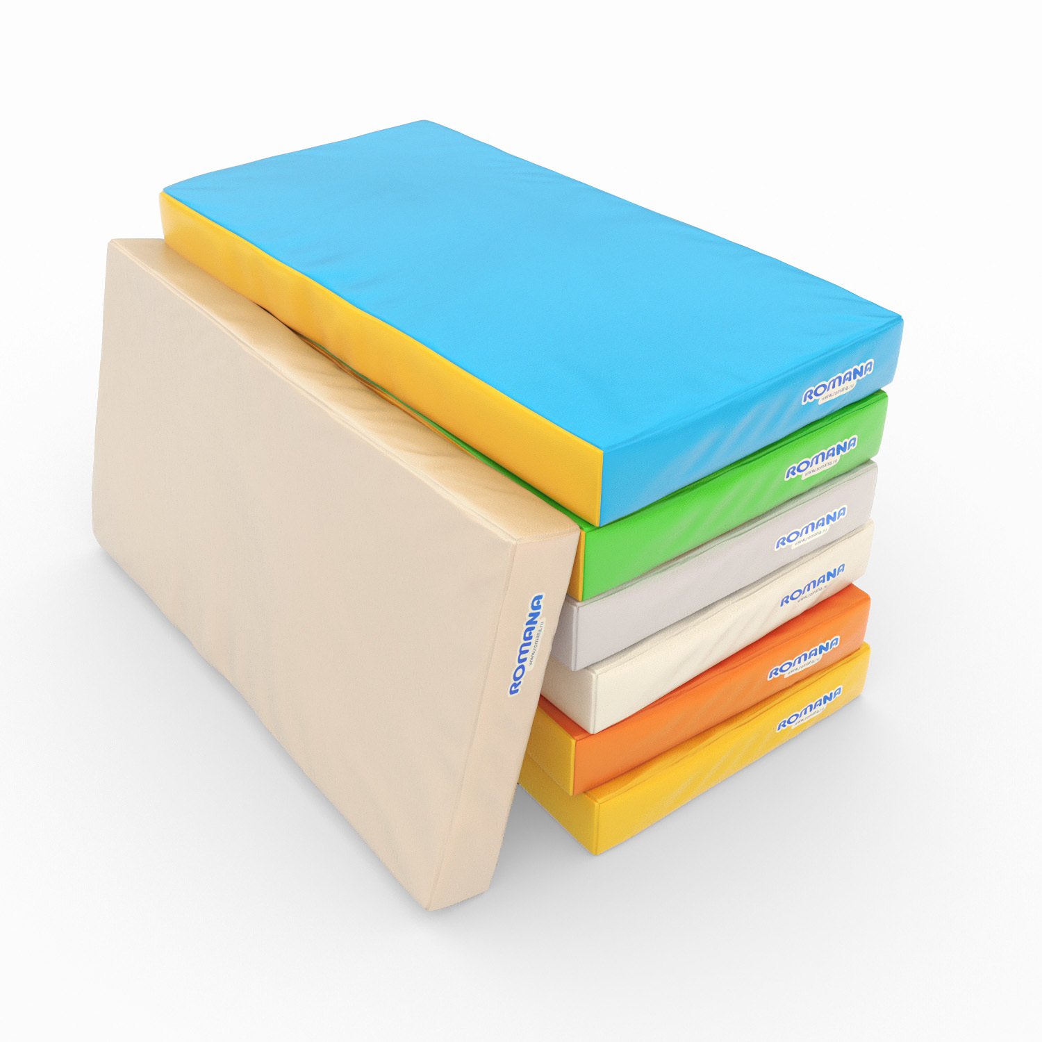 Изделие представлено в различных цветовых решениях, что позволяет подобрать вариант для любого интерьера. Однотонные маты представлены в нежных оттенках бежевого и серого. Универсальные цвета мягко впишутся в интерьер и гармонично дополнят его. Яркий желтый разнообразит цветовые варианты однотонных матов, дерзко контрастируя с мягкими оттенками. Эффектные сочетания двусторонних матов добавят красок в обстановку игровой зоны, а их конструкция позволяет менять цвет изделия в любой момент, просто перевернув его.