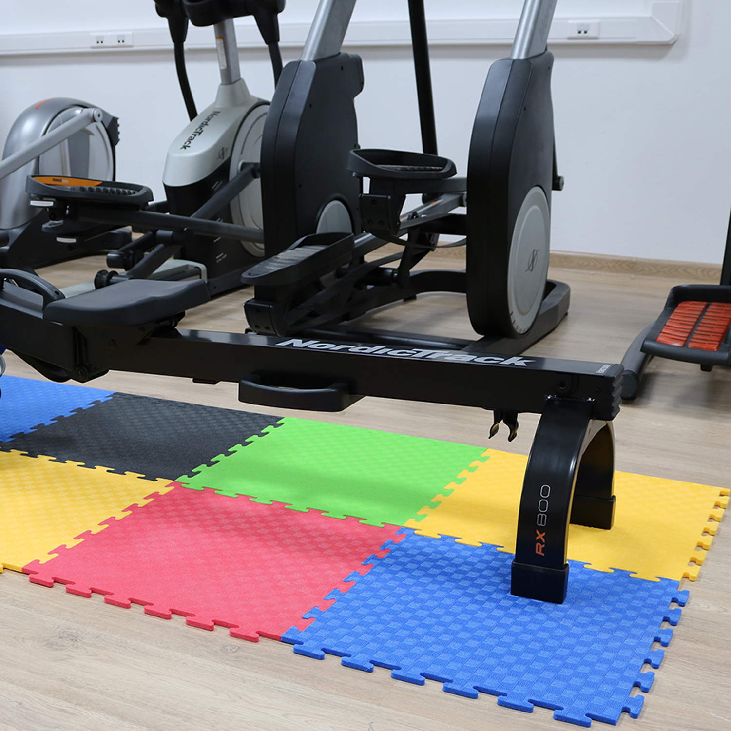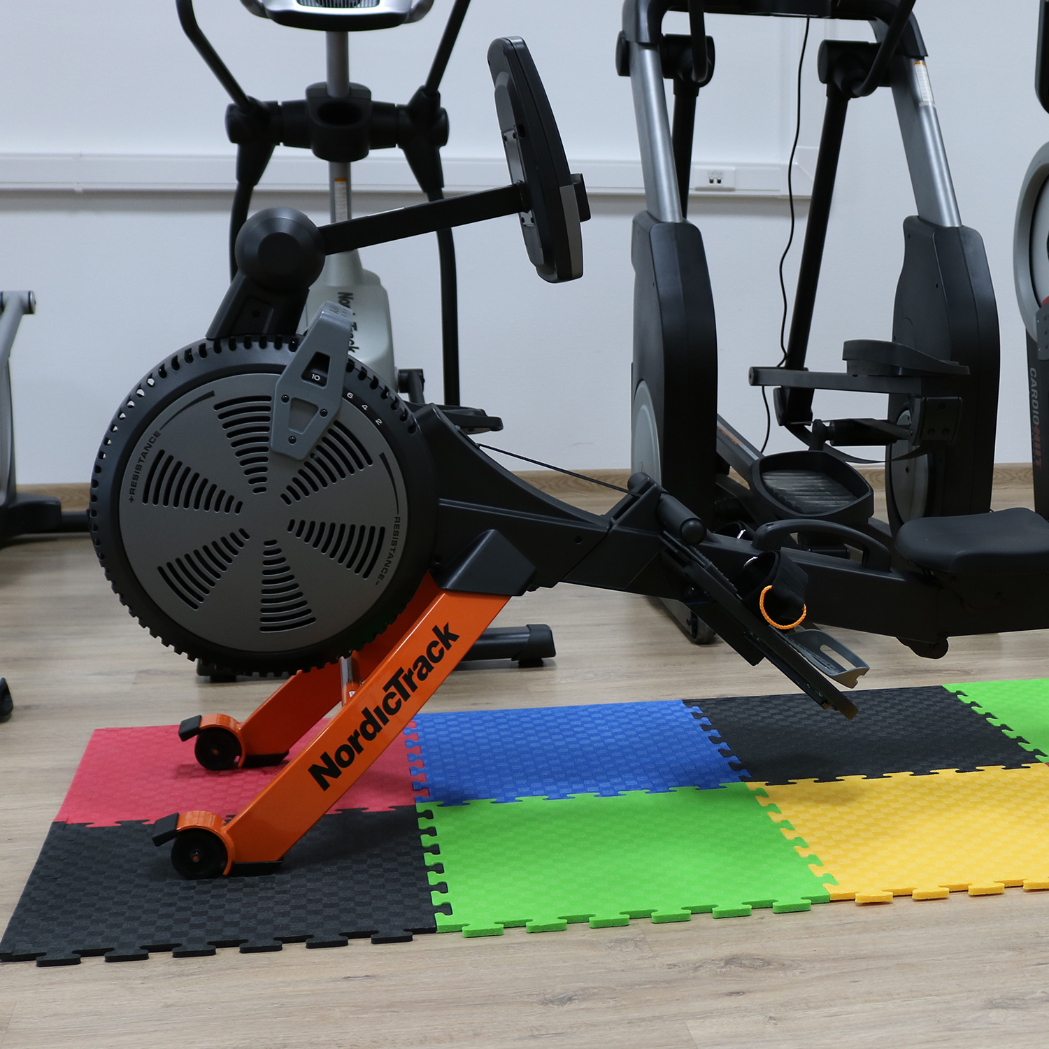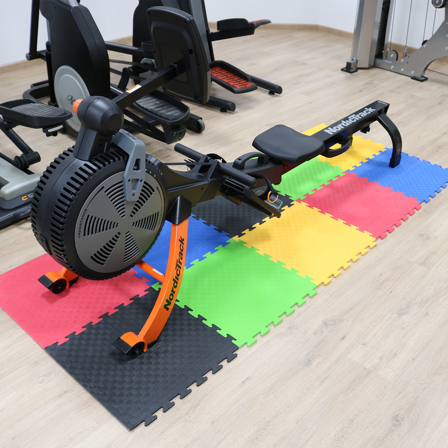 Данный мат будет отличной защитой вашего напольного покрытия от различных повреждений, которые могут возникнуть при использовании тренажеров. Так же мат обладает шумопоглощающим эффектом, он устраняет шум, создавая наилучшие условия для тренировки.