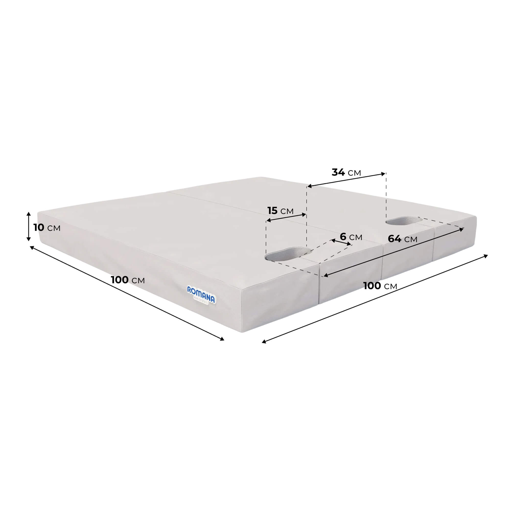 Мат с прорезями для шведской стенки (мягкий щит) Romana 1000*1000*100 , в 2 сложения,