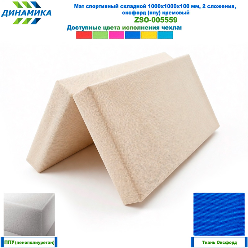 Спортивный складной мат 1000 × 1000 × 100 мм, 2 сложения, бежевый (ткань «Оксфорд», наполнитель — ППУ)