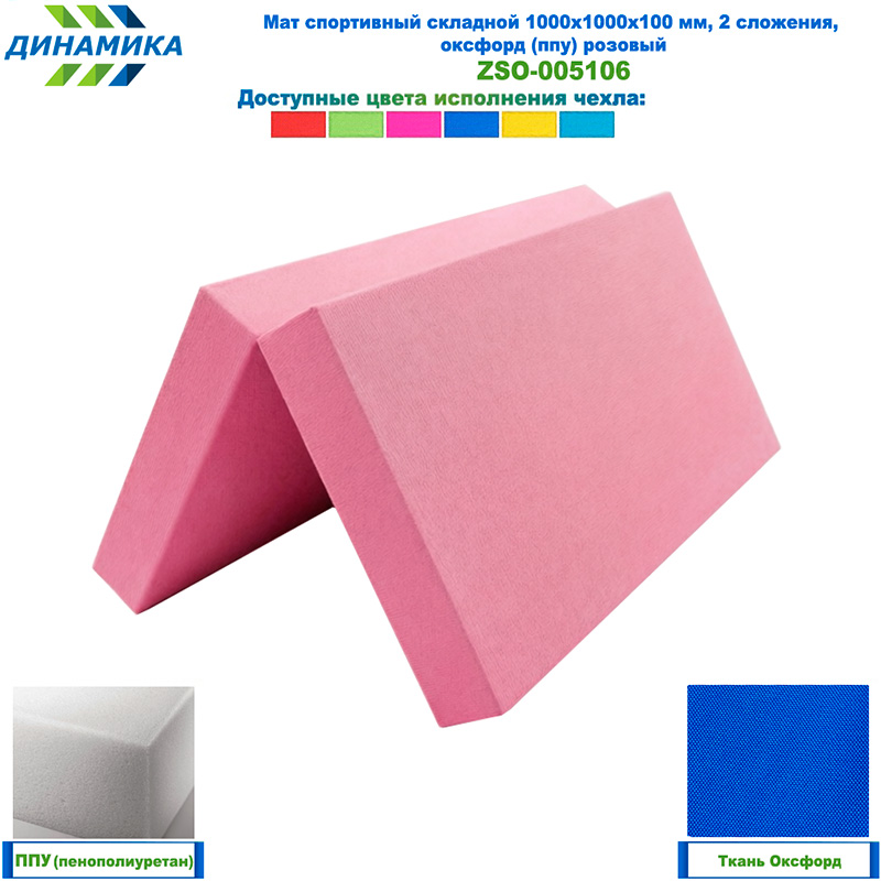 Спортивный складной мат 1000 × 1000 × 100 мм, 2 сложения, розовый (ткань «Оксфорд», наполнитель — ППУ)