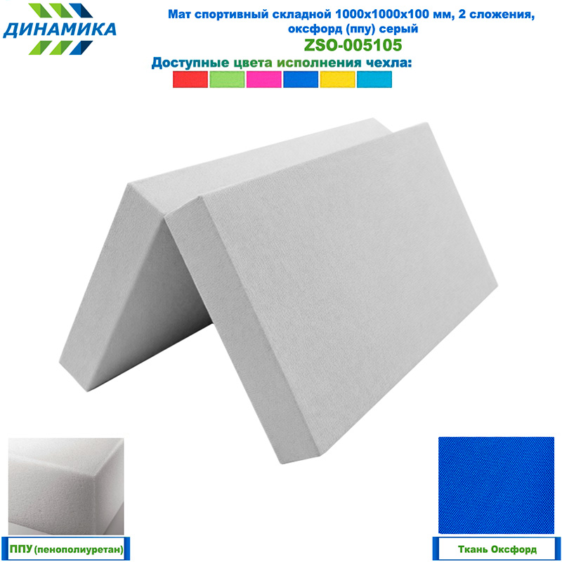 Спортивный складной мат 1000 × 1000 × 100 мм, 2 сложения, серый (ткань «Оксфорд», наполнитель — ППУ)