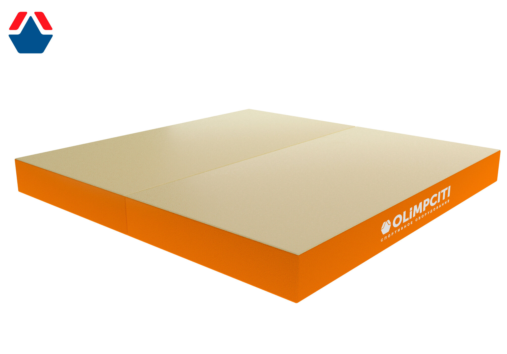 Мат спортивный складной 1000х1000х100 мм 2 сложения (вин.кожа) ОРАНЖЕВО-БЕЖЕВЫЙ