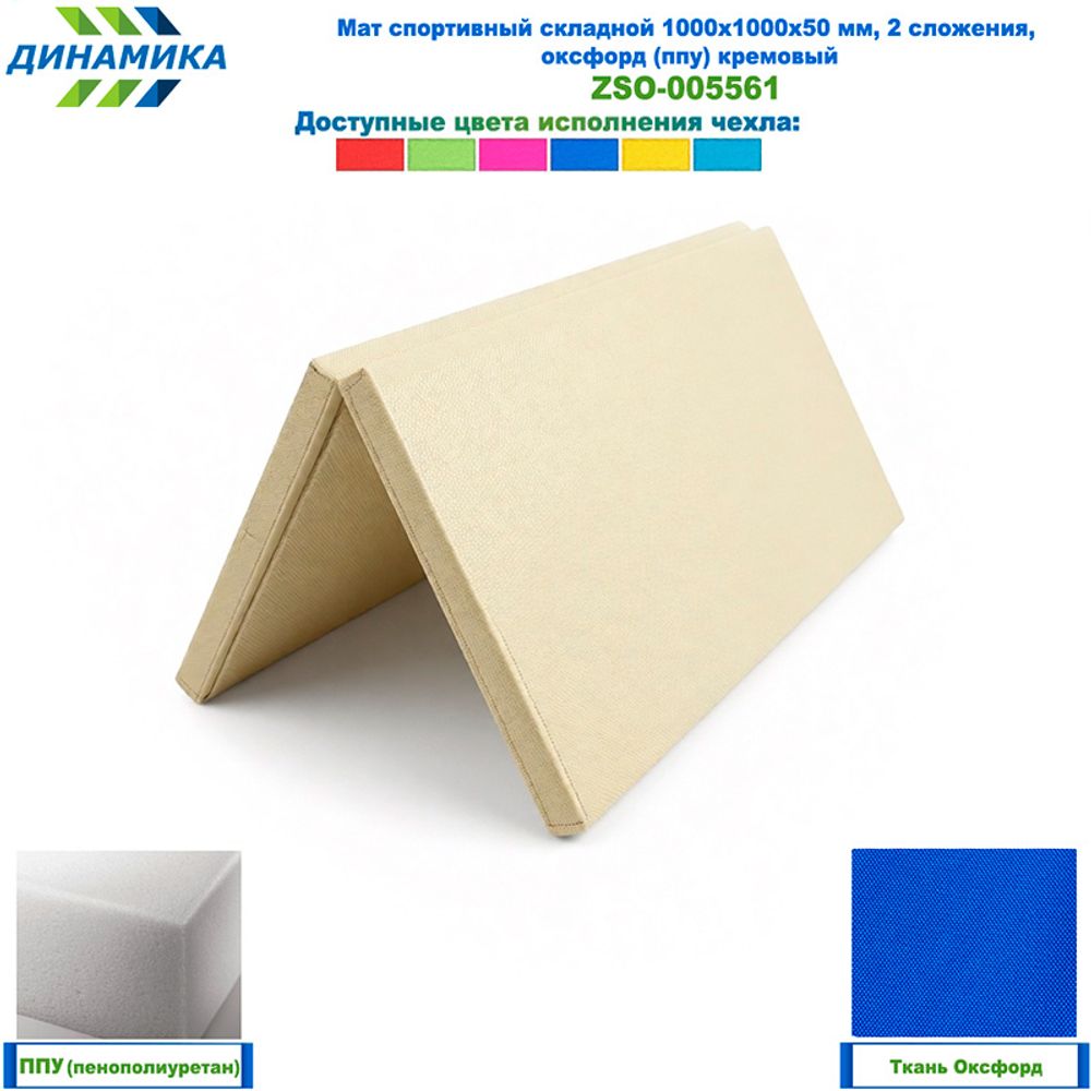 Спортивный складной мат 1000 × 1000 × 50 мм, 2 сложения, кремовый (ткань «Оксфорд», наполнитель — ППУ)