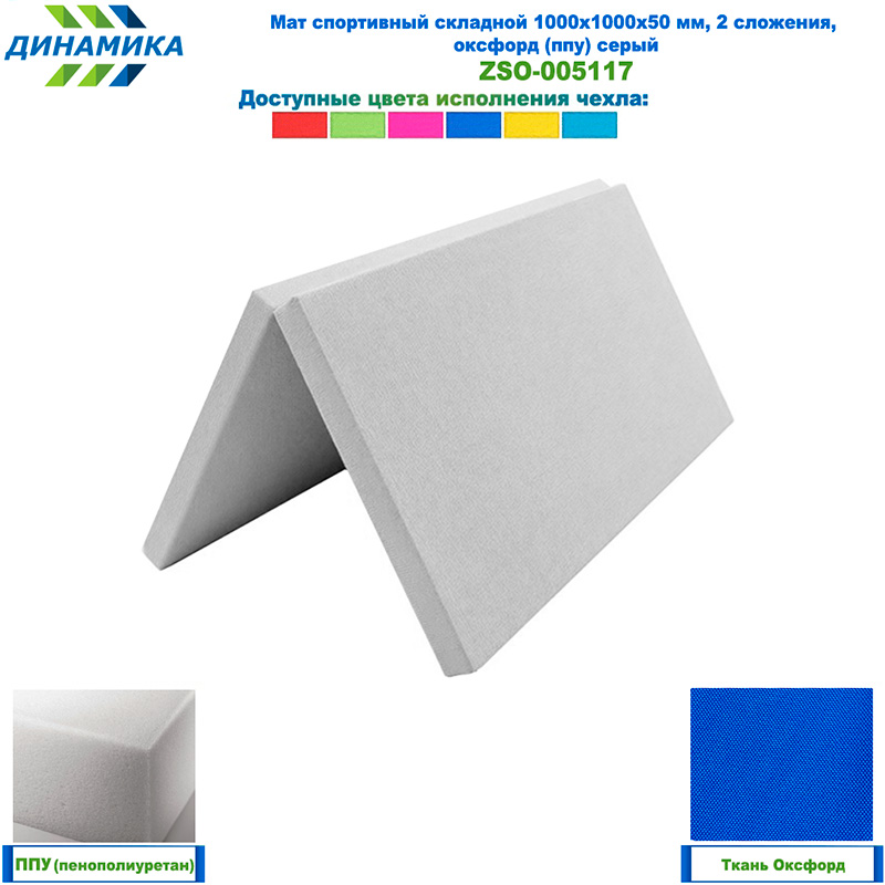 Спортивный складной мат 1000 × 1000 × 50 мм, 2 сложения, серый (ткань «Оксфорд», наполнитель — ППУ)