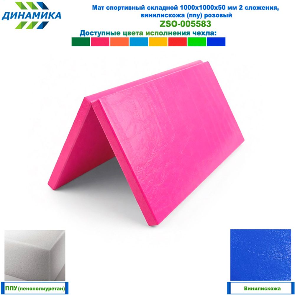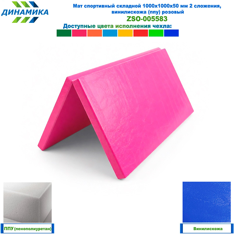 Спортивный складной мат 1000 × 1000 × 50 мм, 2 сложения, розовый (винилискожа, наполнитель — ППУ)