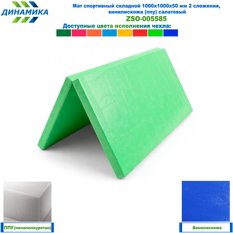 Спортивный складной мат 1000 × 1000 × 50 мм, 2 сложения, салатовый (винилискожа, наполнитель — ППУ)