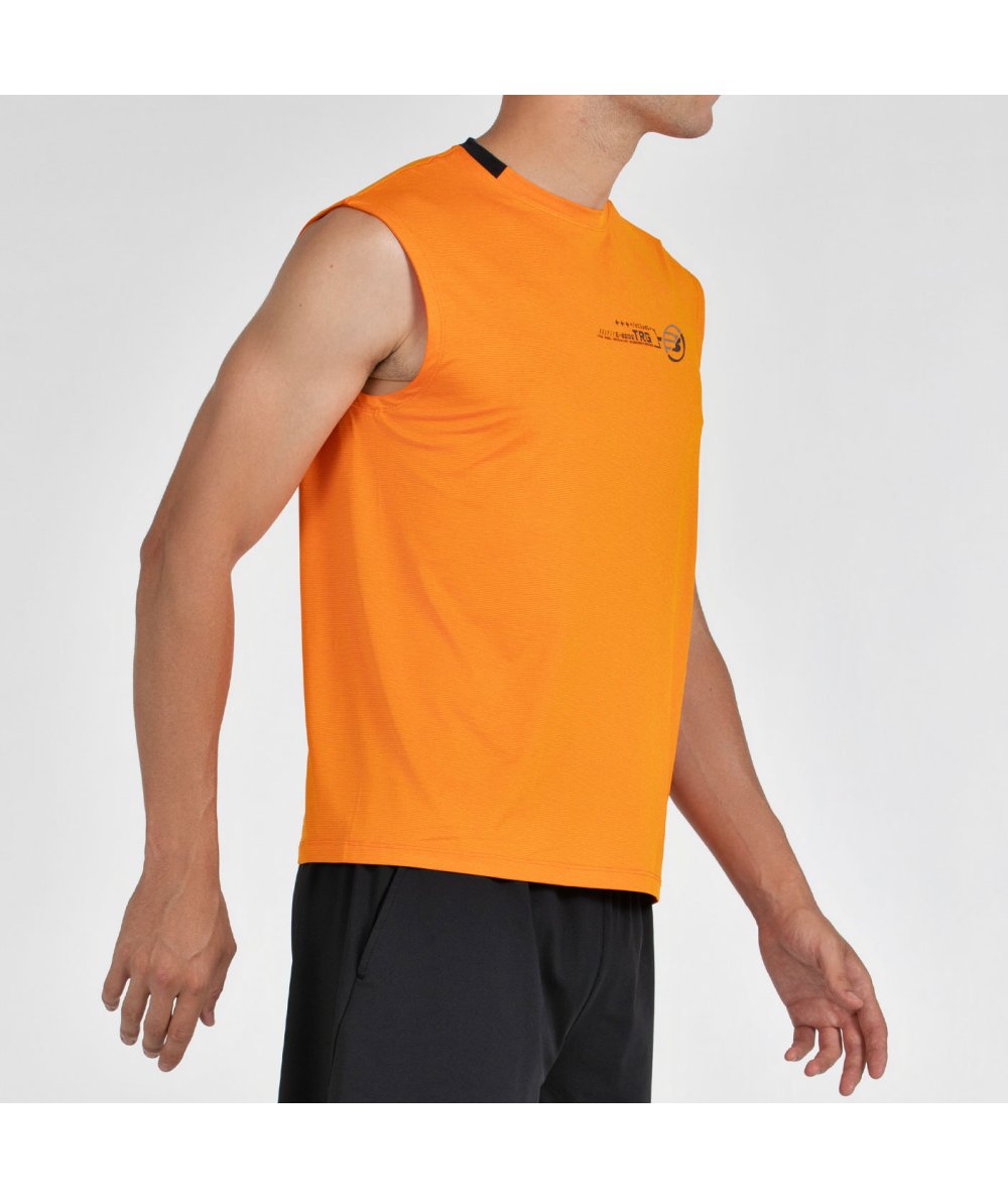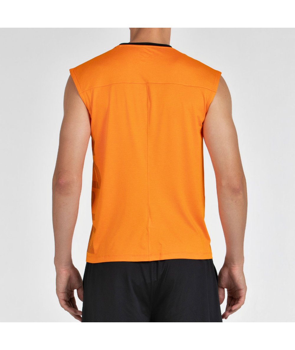 Мужская майка ярко оранжевого цвета без рукавов. Пошита из полиэстера с добавлением хлопкового материала и эластана.<br>