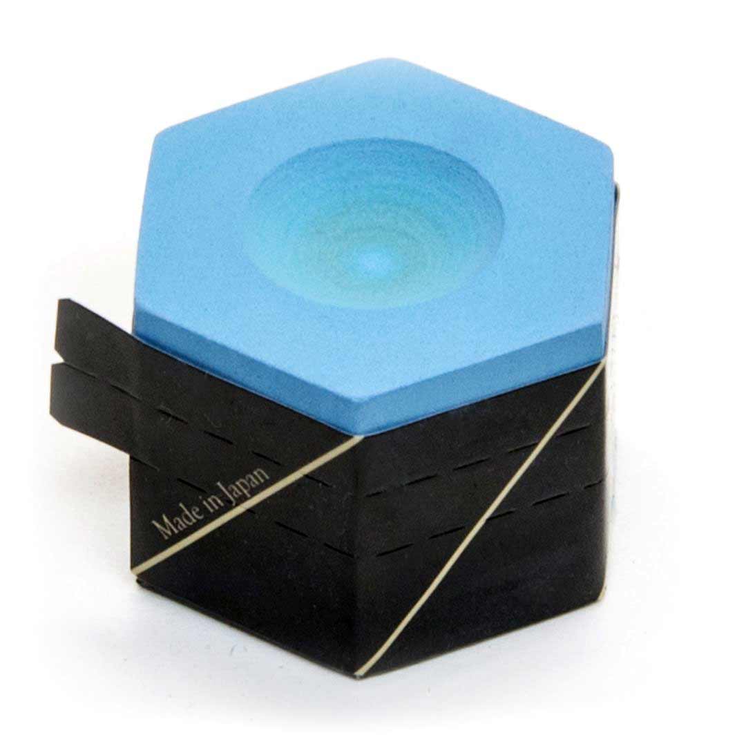 Профессиональный мелкозернистый бильярдный мел "Kamui ROKU Pyramid" насыщенного голубого цвета (sky blue).