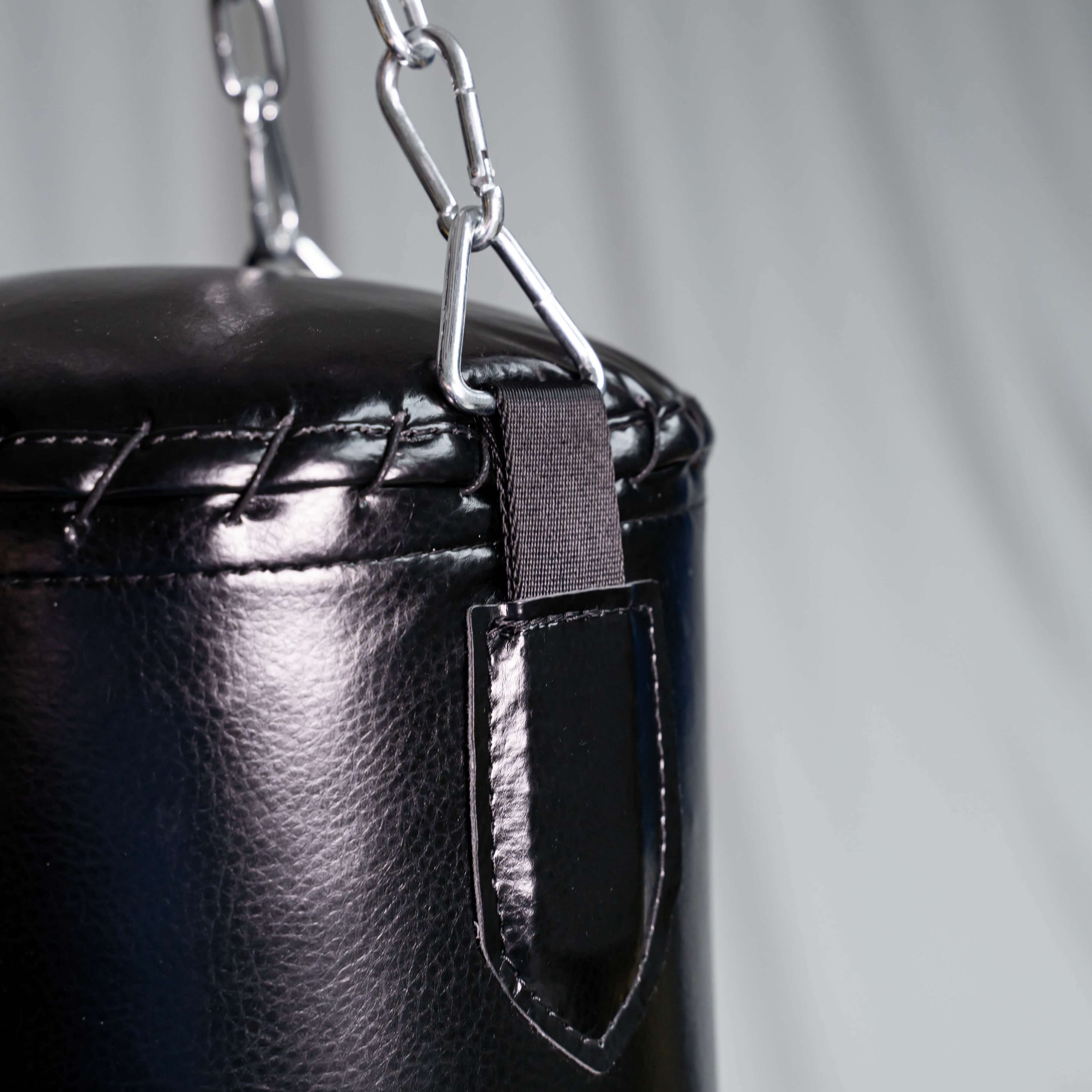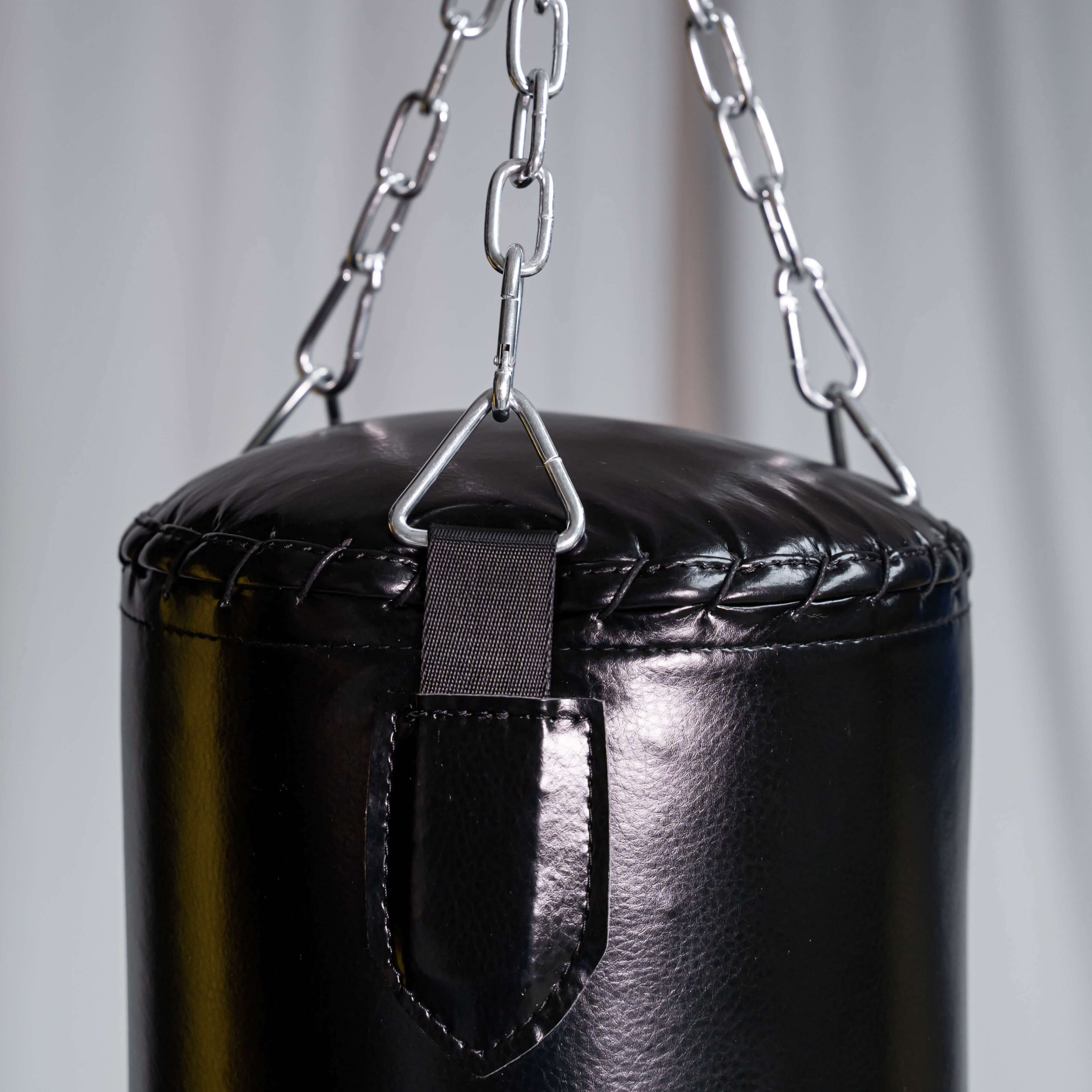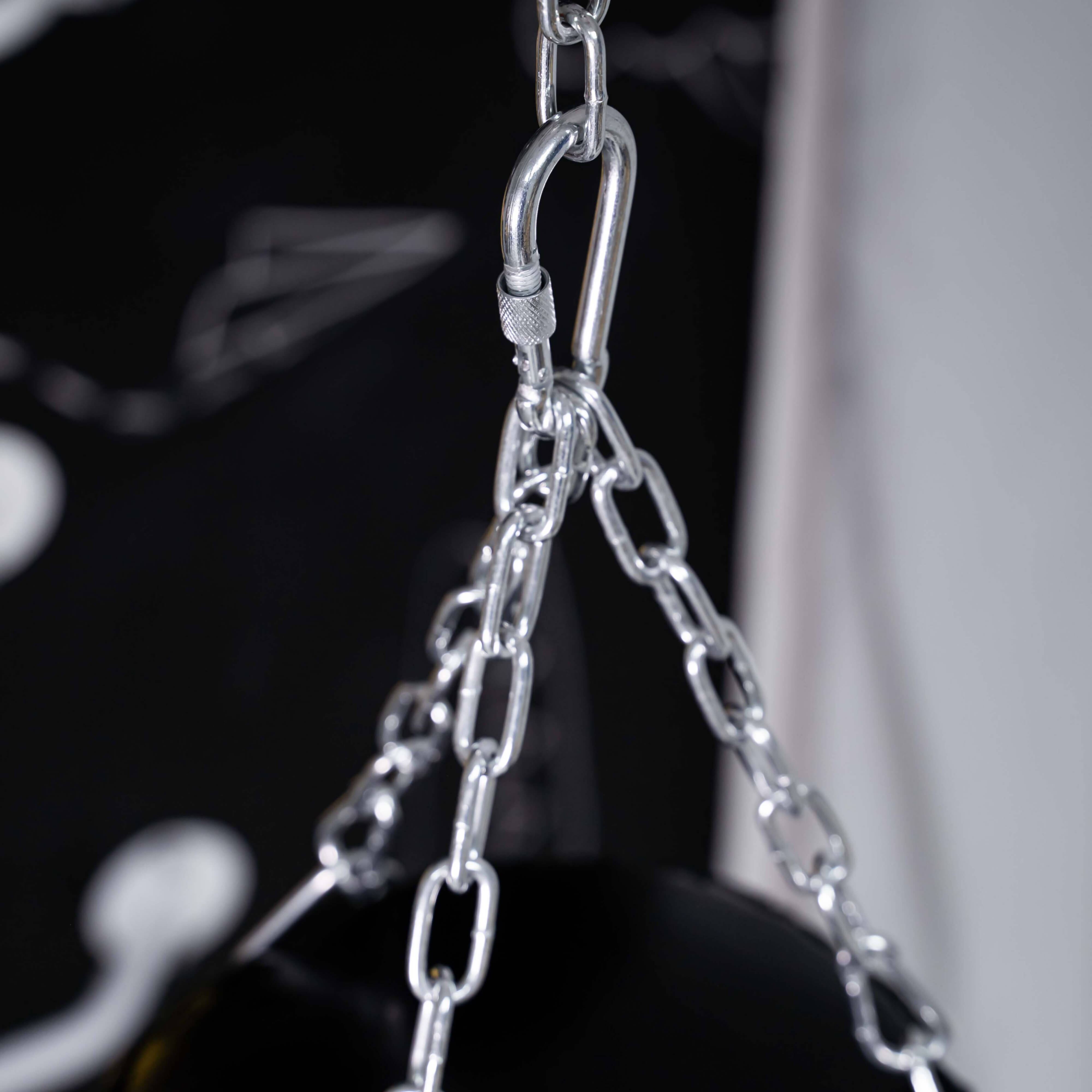 С помощью трехточечного крепления с карабинами боксерский мешок легко повесить на любую высоту в квартире или на даче — на потолок, турник, дерево или специальный кронштейн.