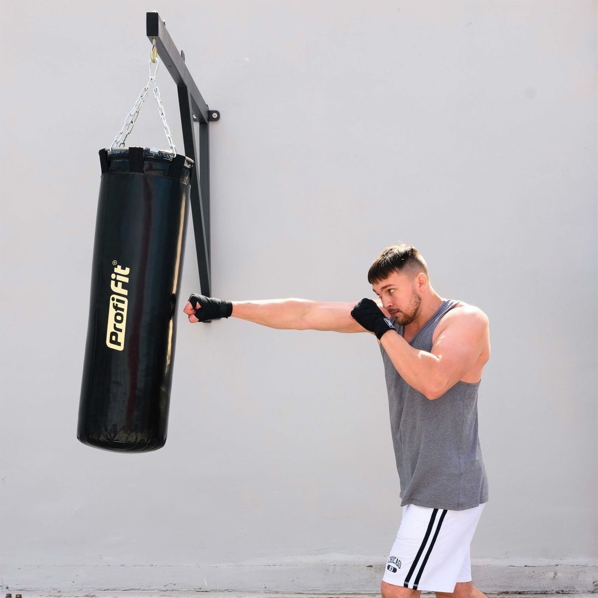 Подвес для боксерского мешка состоит из стального металлического кольца по диаметру мешка и четырех цепей, замкнутых карабином.