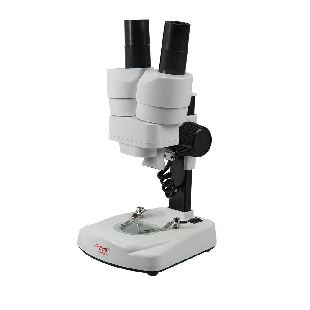 Стереоскопический микроскоп Микромед Атом 20x предназначен для начинающих исследователей. Микроскоп создает прямое, неперевернутое изображение трехмерных объектов. Также он будет полезен для выполнения разнообразных тонких работ, требующих точной координации глаз и рук наблюдателя, например, при монтаже микроэлектронных компонентов или при изготовлении микропрепаратов для биологических исследований.