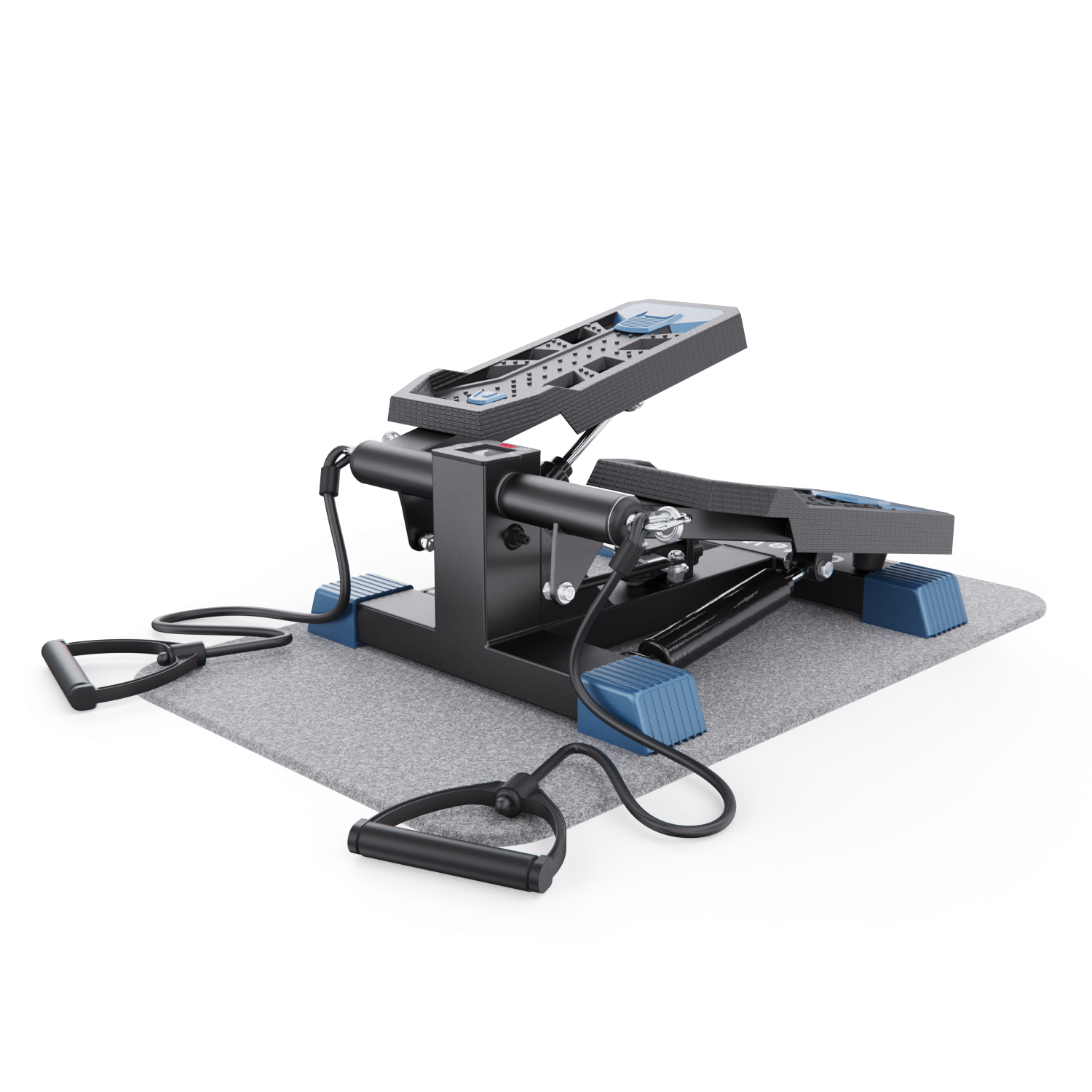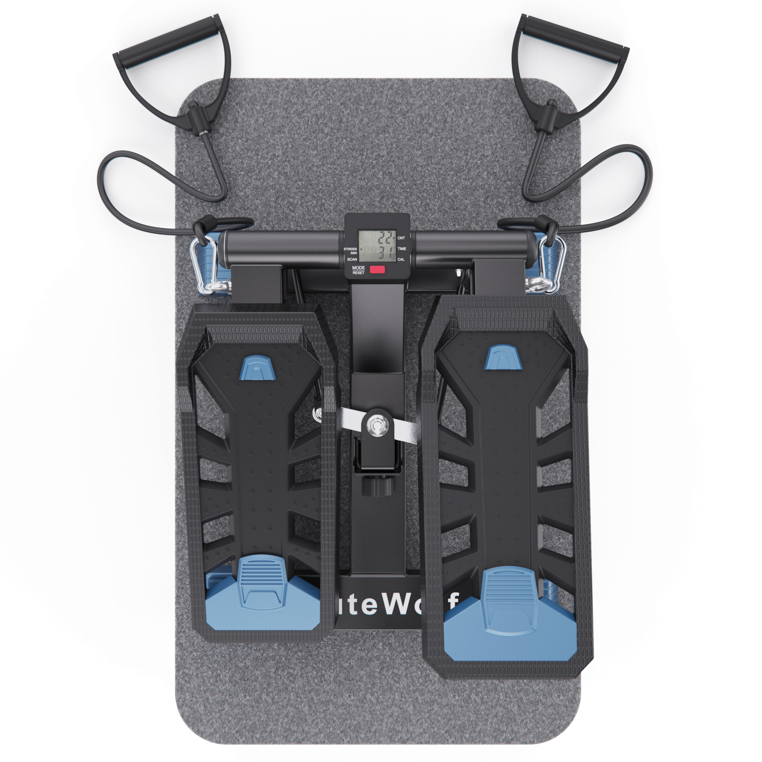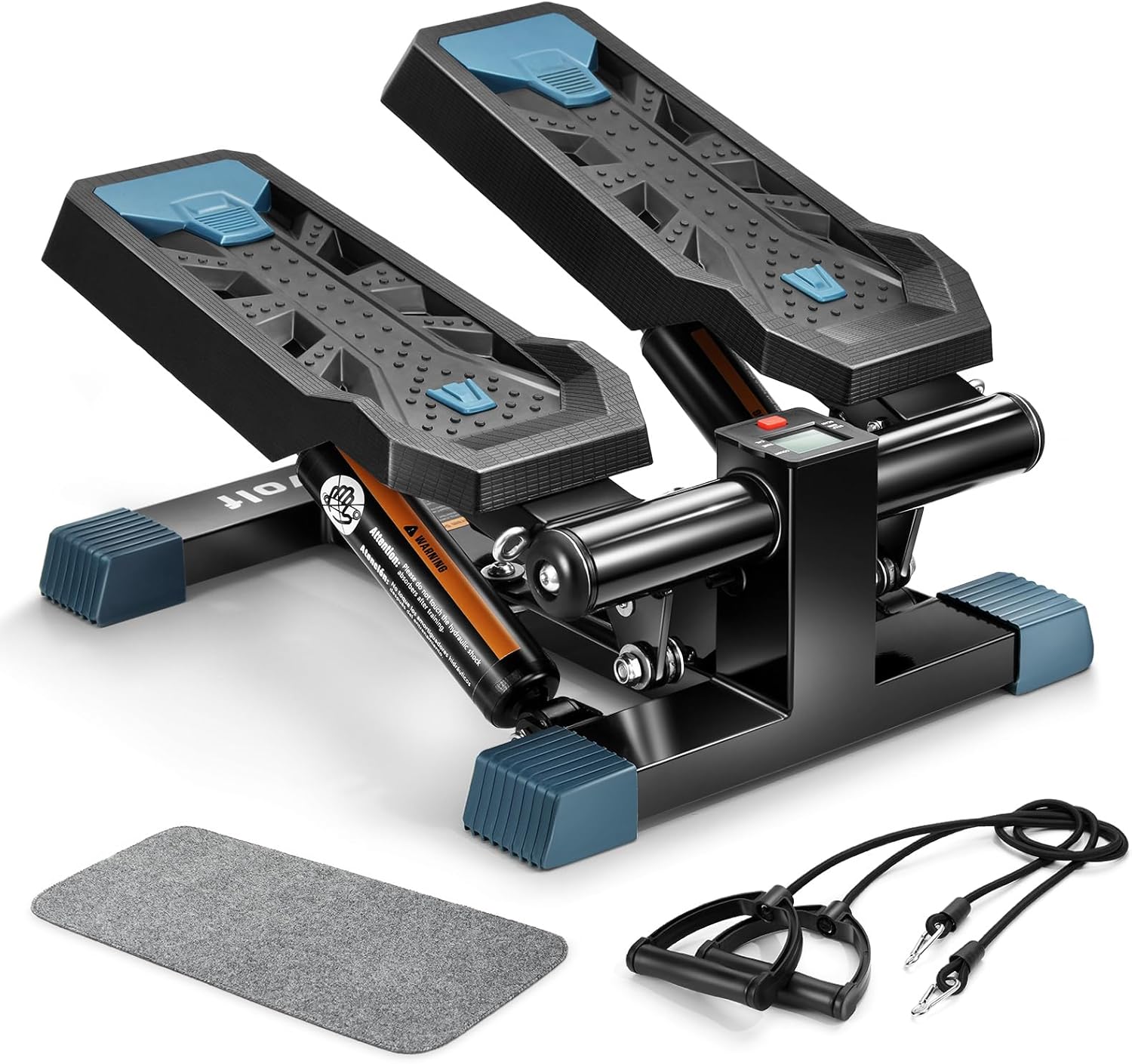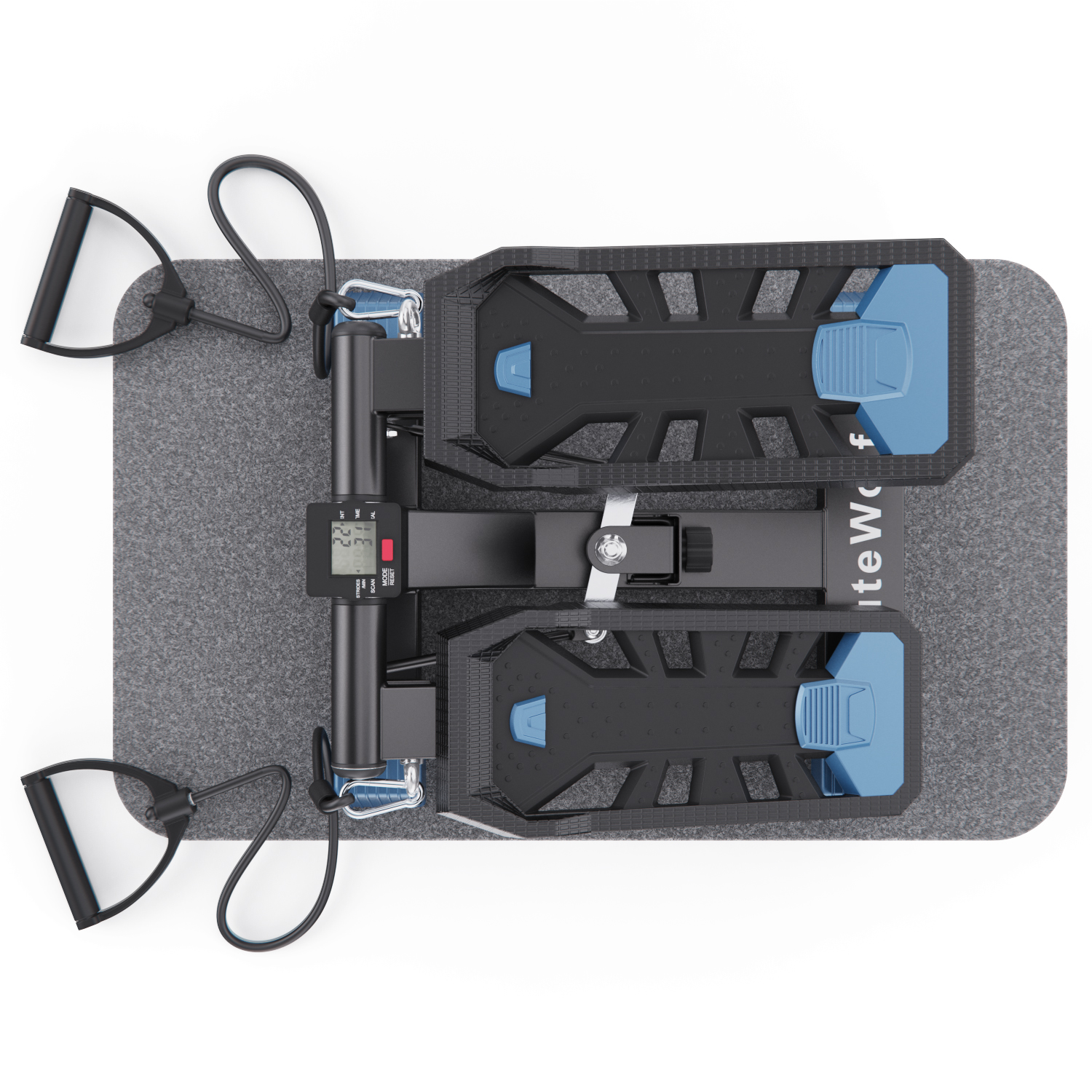 В комплекте с мини степпером идут съёмные эспандеры, коврик и инструменты для сборки и обслуживания. Монохромный LCD дисплей степера показывает время, количество сожженных калорий, количество шагов, количество шагов в минуту и режим сканирования, делая ваши тренировки универсальными.