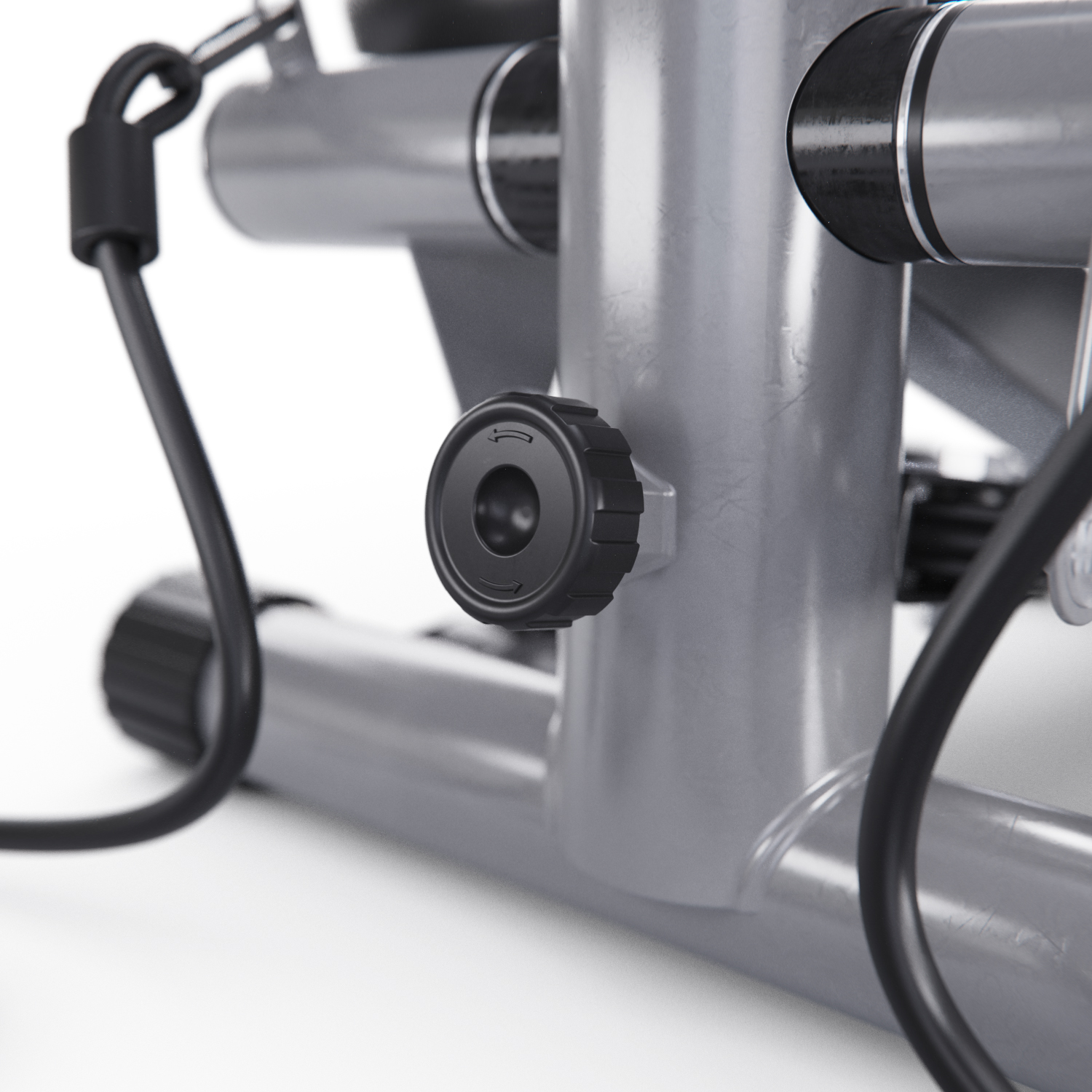 Педали степпера имеют размеры 31 х 12 см, а благодаря ручке на раме тренажёра вы можете регулировать высоту их подъёма от 8 до 30 см, выбирая оптимальный уровень нагрузки. Чем выше поднимаются педали, тем больше усилий вам нужно прилагать, и наоборот.