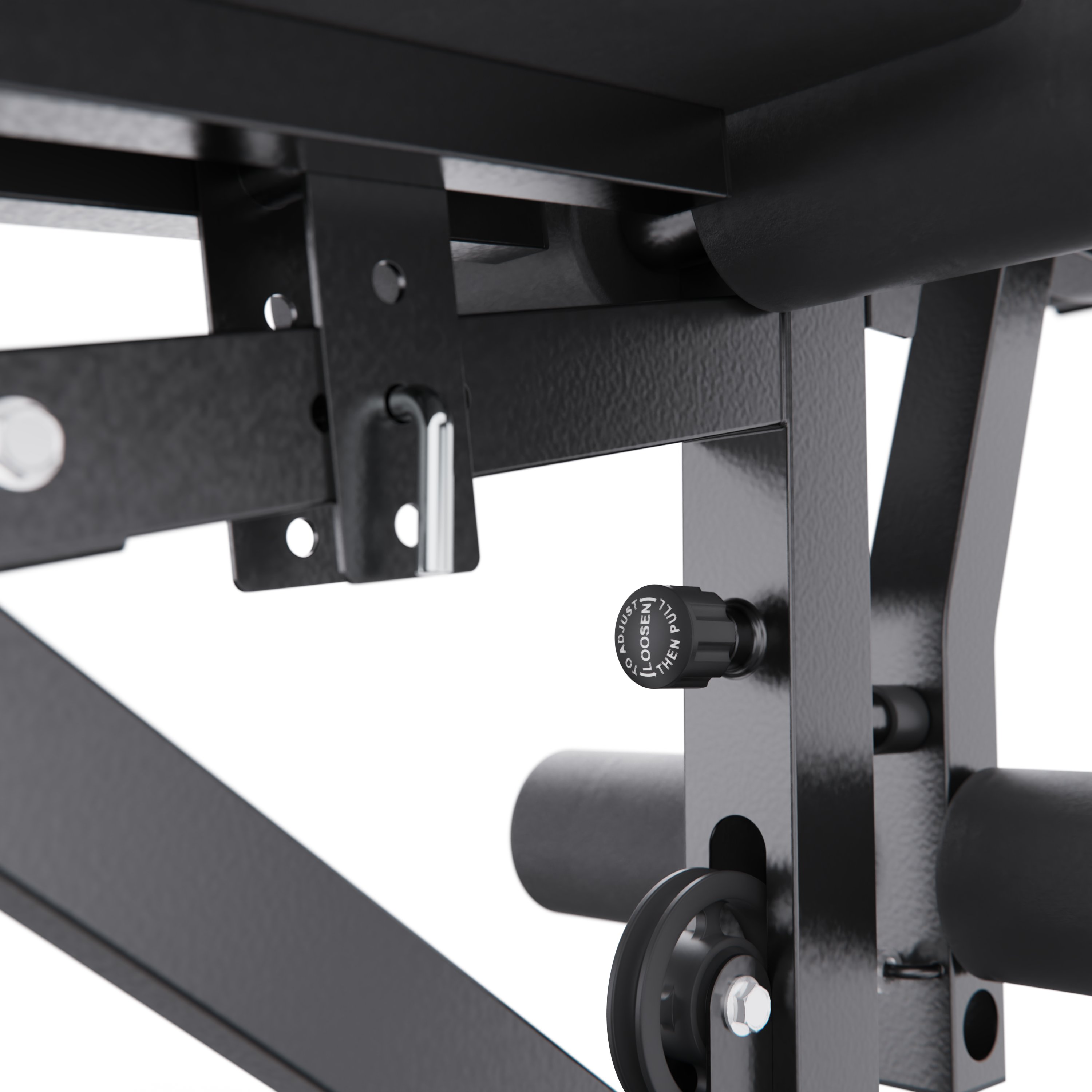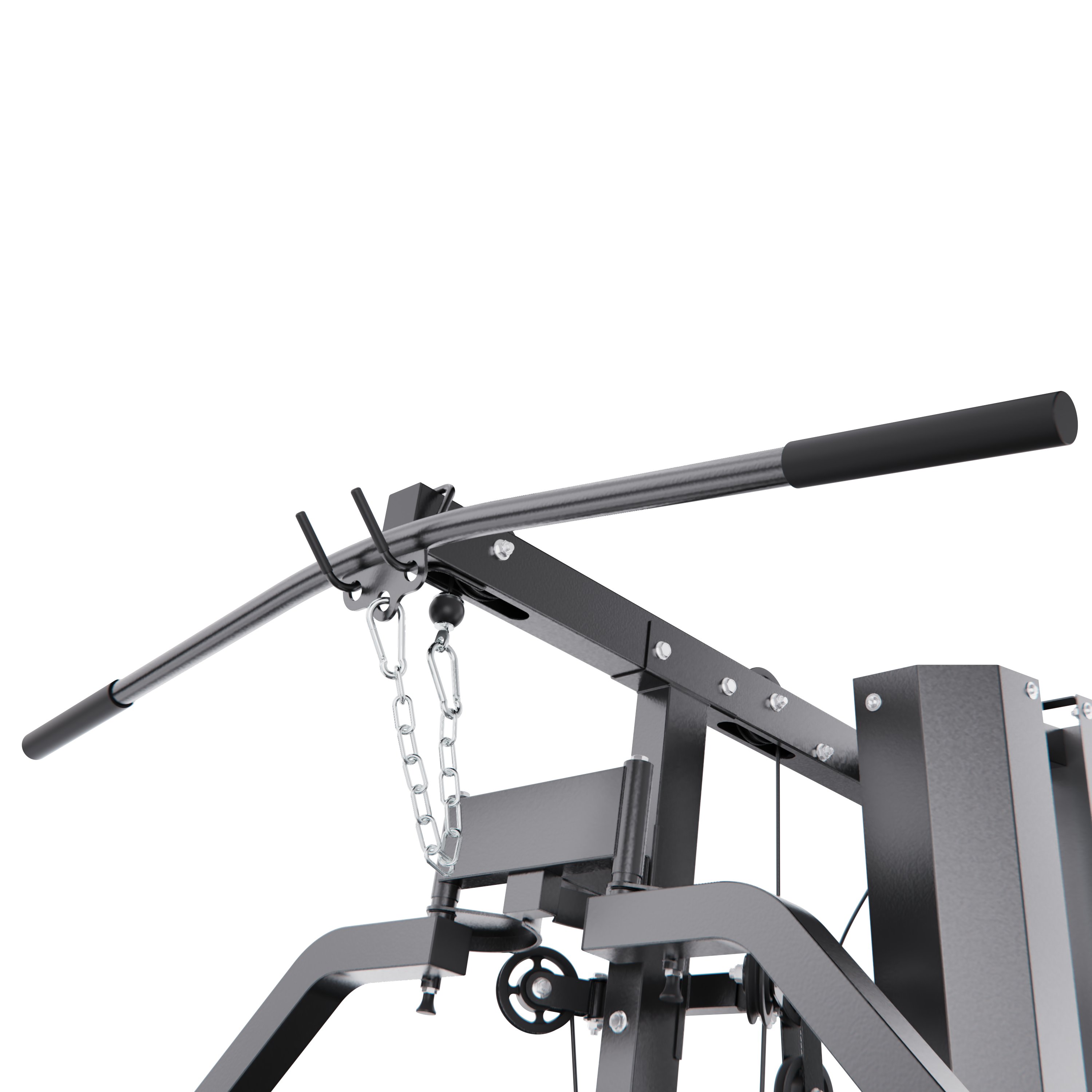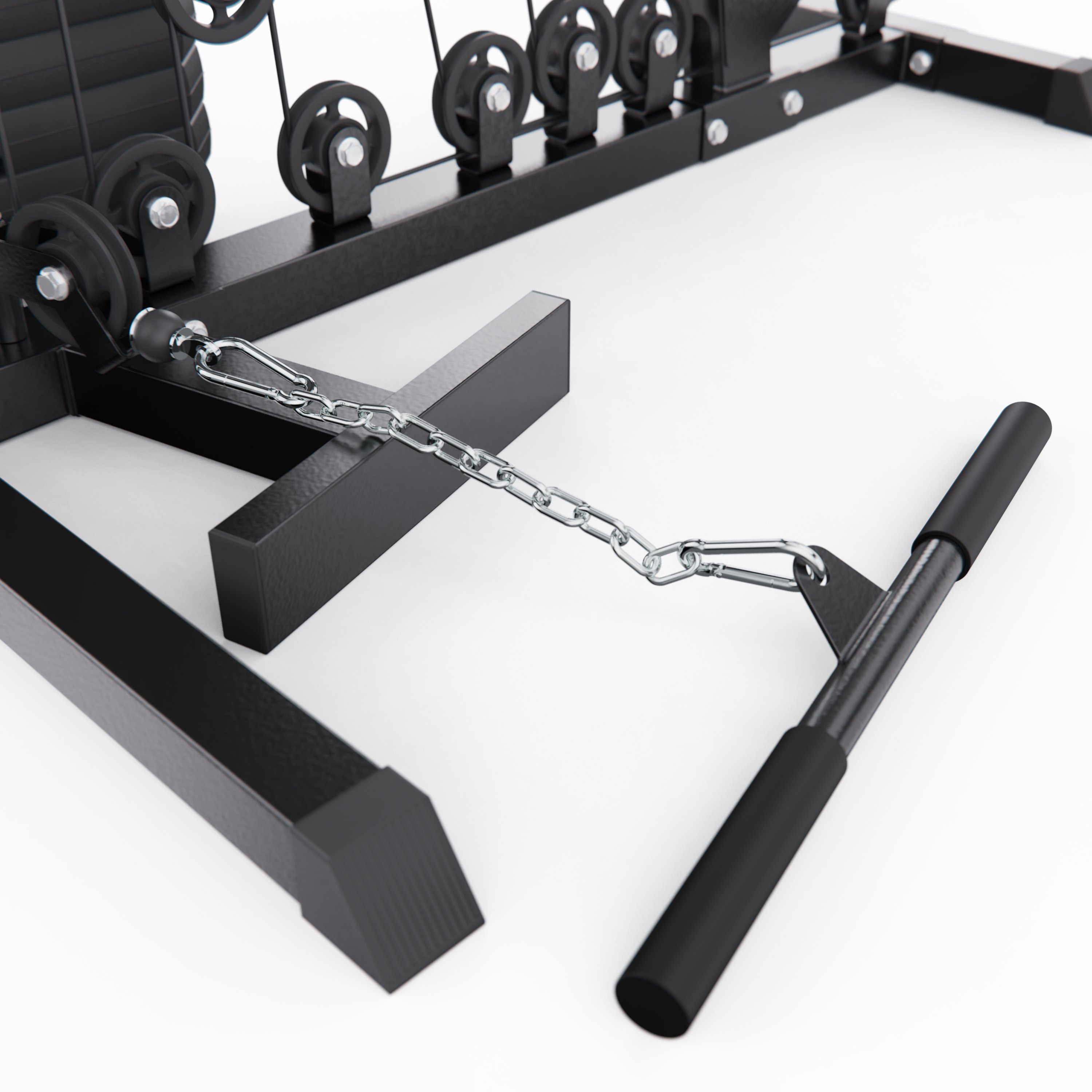 В конструкции предусмотрено 13 свободных блоков и 1 встроенный весовой блок весом 77 кг. Такая система позволяет гибко настраивать нагрузку по уровню физической подготовки — от начинающего до уверенного спортсмена. Силовой комплекс удобно использовать как для набора мышечной массы, так и для поддержания формы.
