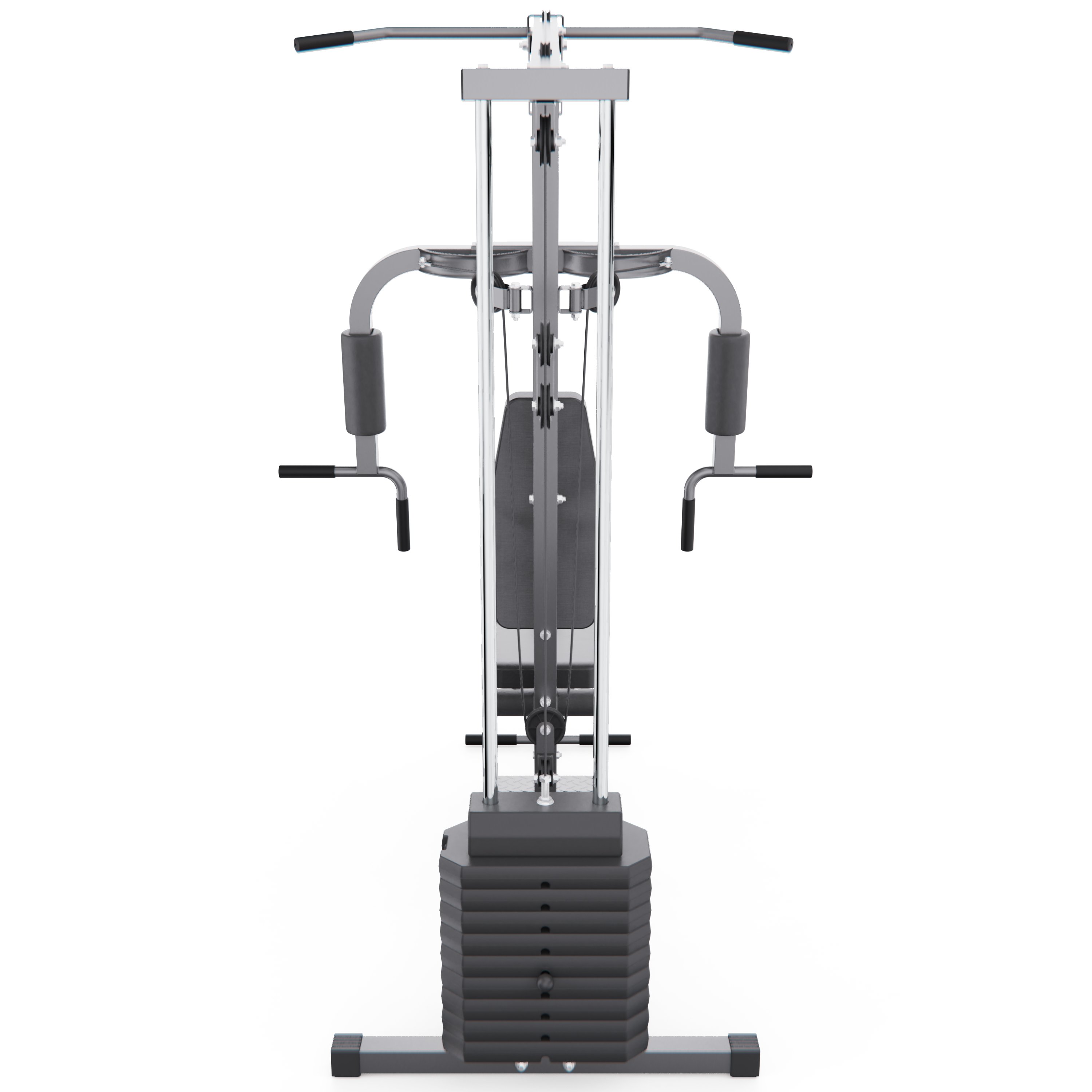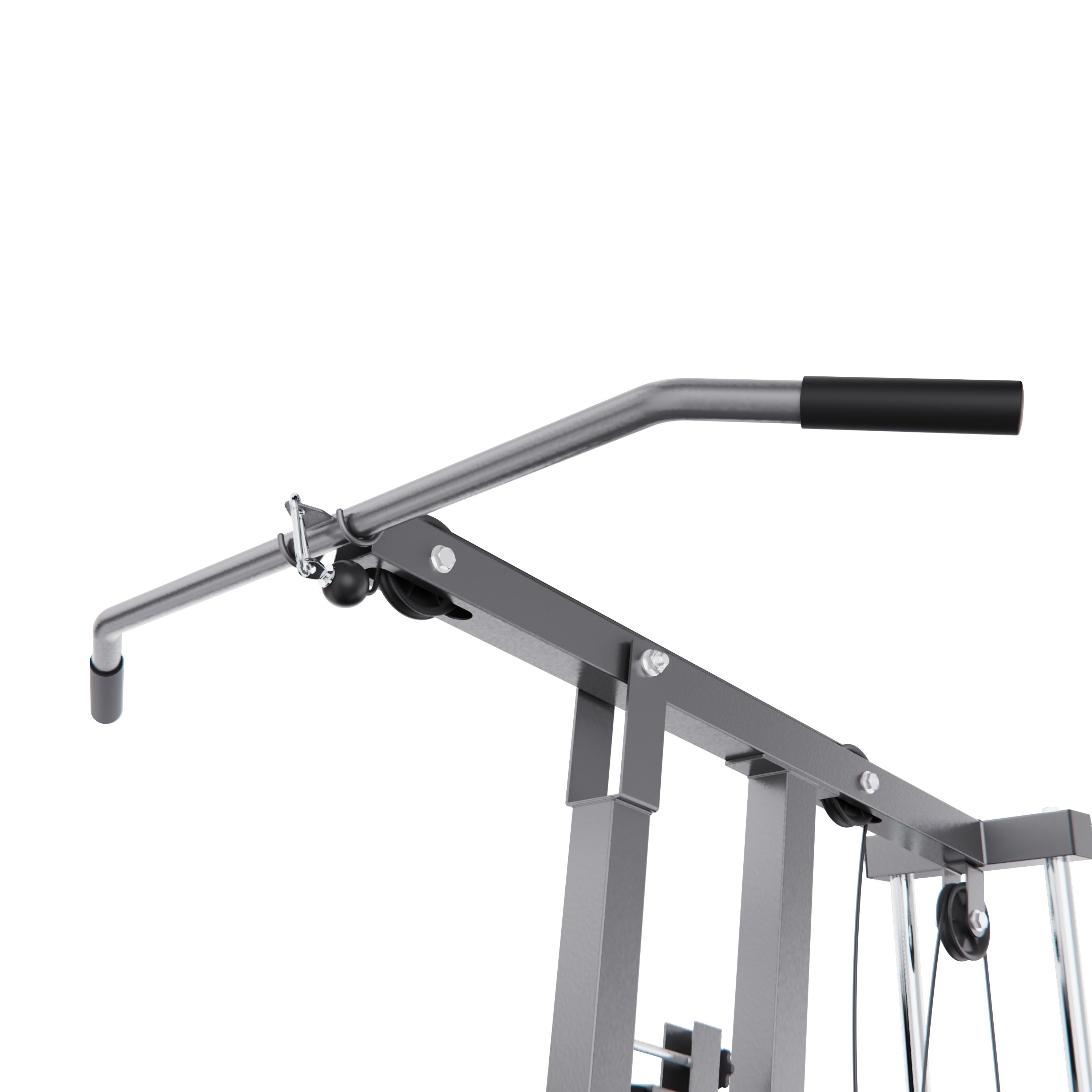 В конструкции предусмотрено 9 свободных блоков и 1 встроенный весовой блок весом 46 кг. Такая система позволяет гибко настраивать нагрузку под уровень подготовки пользователя — от начинающего до уверенного спортсмена. Силовой комплекс удобно использовать как для набора мышечной массы, так и для поддержания формы.