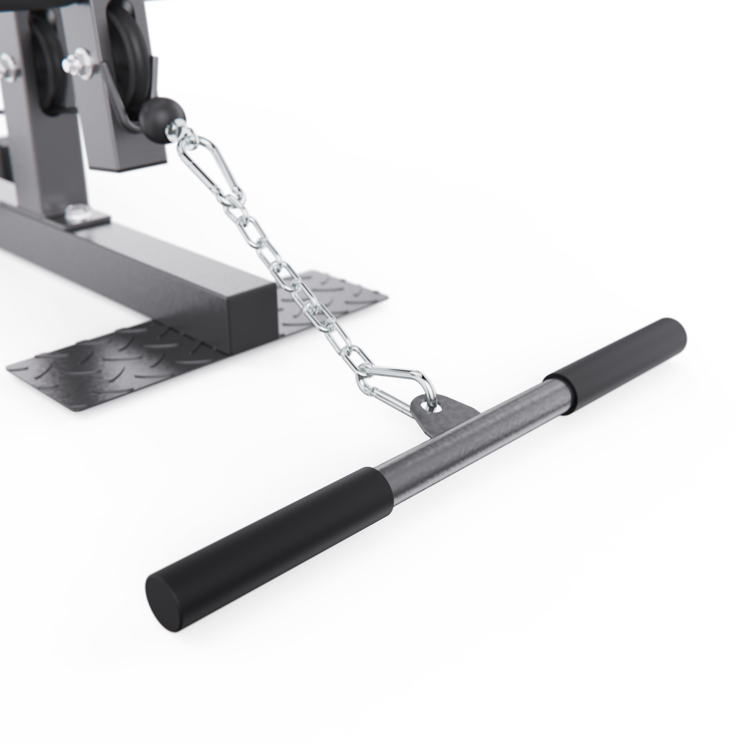 Расстояние между поручнями составляет 90 см, а длина ручек поручней — 13 см, что обеспечивает удобный и надежный хват во время выполнения упражнений. Длина грифа — 97 см, что обеспечивает комфортное и естественное выполнение упражнений. Сиденье размером 30 х 30 см и спинка 61 х 24,5 см обеспечивают устойчивую посадку и надёжную поддержку спины в процессе занятий.