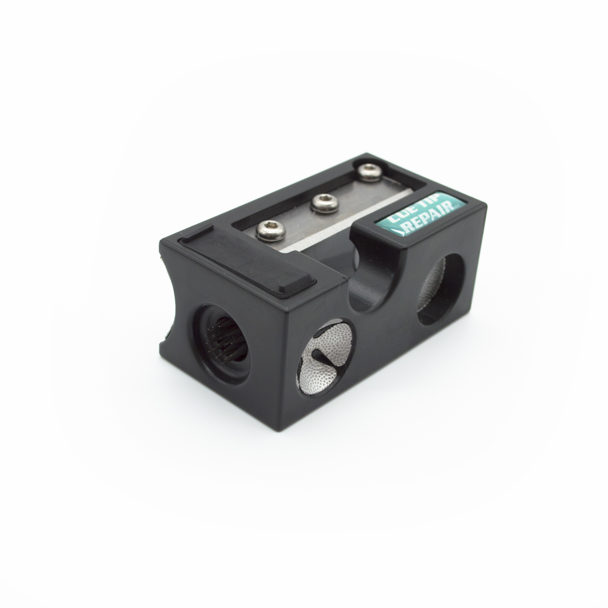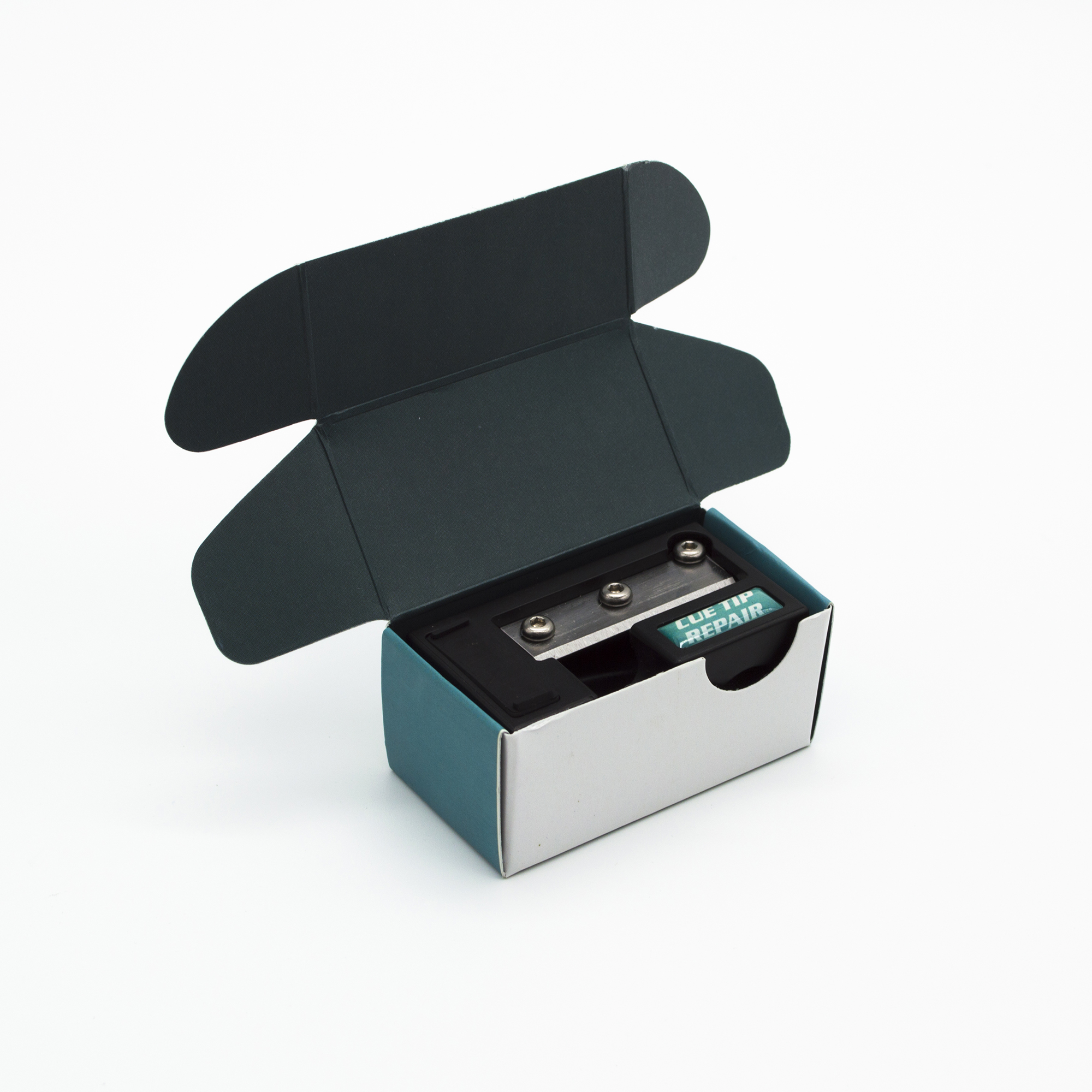 - Удаляет следы старой наклейки с кия, выравнивая поверхность торца шафта.