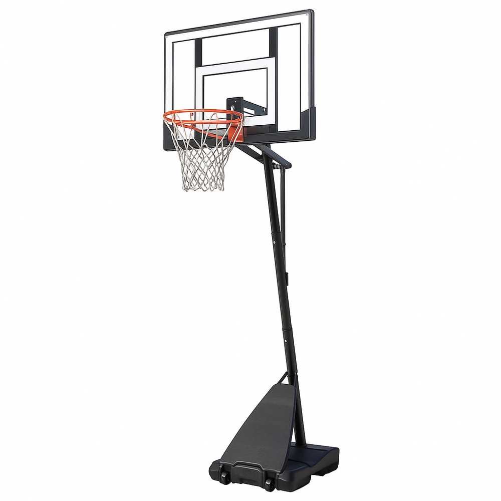 Стойка оснащена прочным щитом из ПЭТ, который выдерживает активное использование, а толщина щита обеспечивает надёжность и долговечность. В комплект входит сетка для кольца, что делает игру более реалистичной и безопасной.