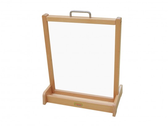 Двусторонний настольный мольберт для создания творческих работ с использованием красок или маркеров на водной основе. Рамка и основание выполнены из массива бука (который долго прослужит), поверхность для рисования - из акрилового стекла. В основании с двух сторон имеются выемки для стаканов, красок и кисточек. В верхней части имеется удобная металлическая ручка для переноски, что позволяет размещать мольберт в любом месте.