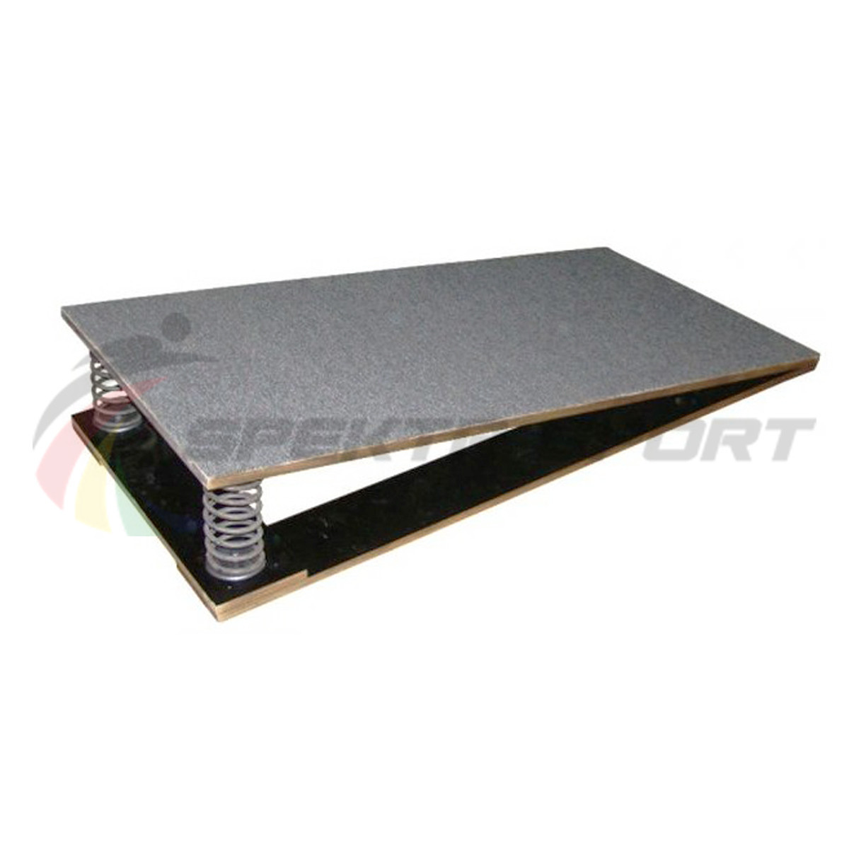 Жесткий гимнастический мостик предназначен для выполнения опорных прыжков. Устанавливается на ровной площадке. Представляет собой конструкцию, состоящую из верхней площадки и основания из фанеры, соединенных опорой из фанеры.