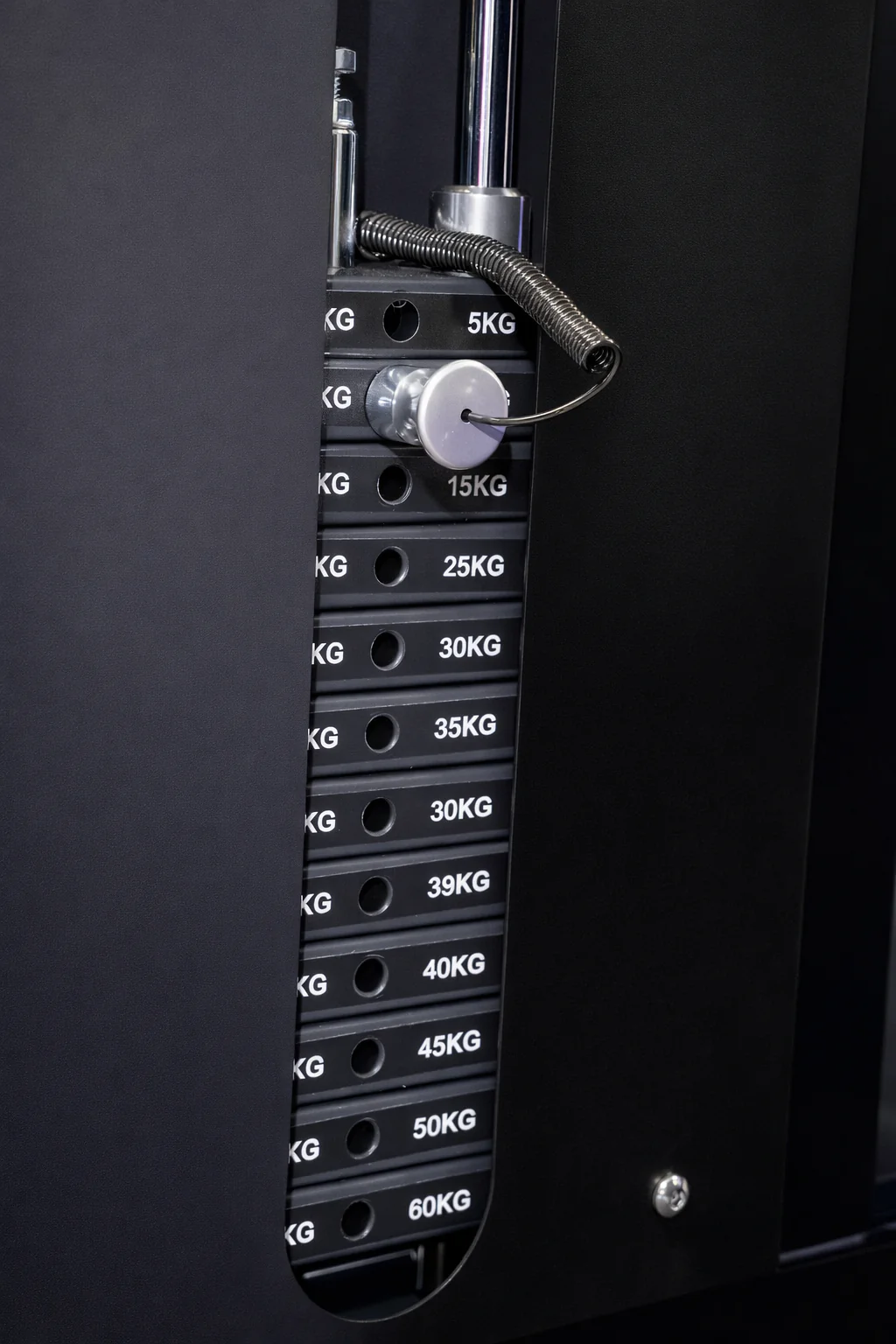 В конструкции предусмотрено 38 свободных блоков и 2 встроенных весовых блока по 100 кг. Такая система позволяет гибко настраивать нагрузку по уровню физической подготовки — от начинающего до уверенного спортсмена. Силовой комплекс удобно использовать как для набора мышечной массы, так и для поддержания формы.