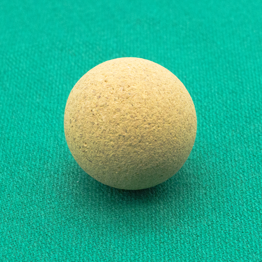 Жёлтый пробковый мяч диаметром 36 мм. Подходит для кикера со штангами диаметром 16 мм. Обладает плотной пробковой структурой, обеспечивающей тихую игру и лёгкий контроль.