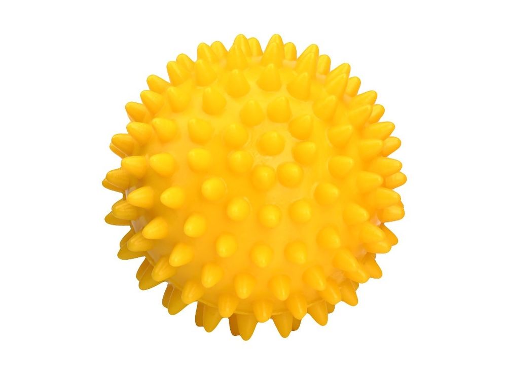 Массажный мяч жёсткий применяется при восстановлении после травм рук, профилактики плоскостопия. При занятиях с данным мячиком шипы на поверхности воздействуют на нервные окончания, улучшается приток крови, стимулируется кровообращение.